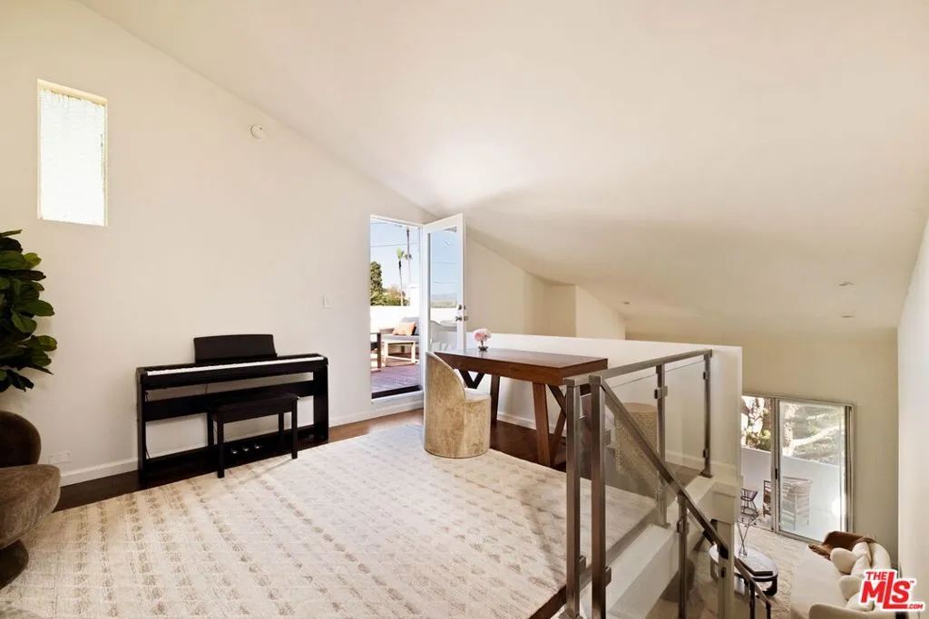 Welcome to your Brentwood era! Set in the heart of Brentwood, this condo is a light-filled, top-floor corner unit that blends effortless style with everyday comfort. This 2-bedroom, 1-bathroom home offers 1,143 square feet of airy living space, soaring ceilings, and only one shared wall giving you privacy and calm in one of the Westside's most bustling neighborhoods. Step inside and enjoy the open-concept floor plan and welcoming living area with a cozy fireplace. The contemporary kitchen makes both daily living and entertaining feel easy, and the bathroom has been tastefully updated with stylish finishes. The primary bedroom is large and bright, with access to the front balcony, and features an enviable walk-in closet built out for all your storage needs. The second bedroom features a loft-style design that opens directly to your private rooftop deck; think sunset dinners, weekend hangs, or a quiet morning coffee above it all. Beyond your front door, enjoy the large community pool and BBQ area. Plus, two assigned parking spaces, garage access, and guest parking make city living seamless. All of this, just moments from Brentwood's best dining, coffee spots, shopping, and parks (yes, even a dog park!). With an 87 Walk Score, you can leave the car at home without missing a thing. Bright, airy, and designed for your lifestyle this is the one.