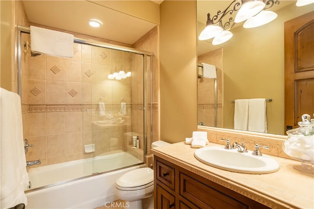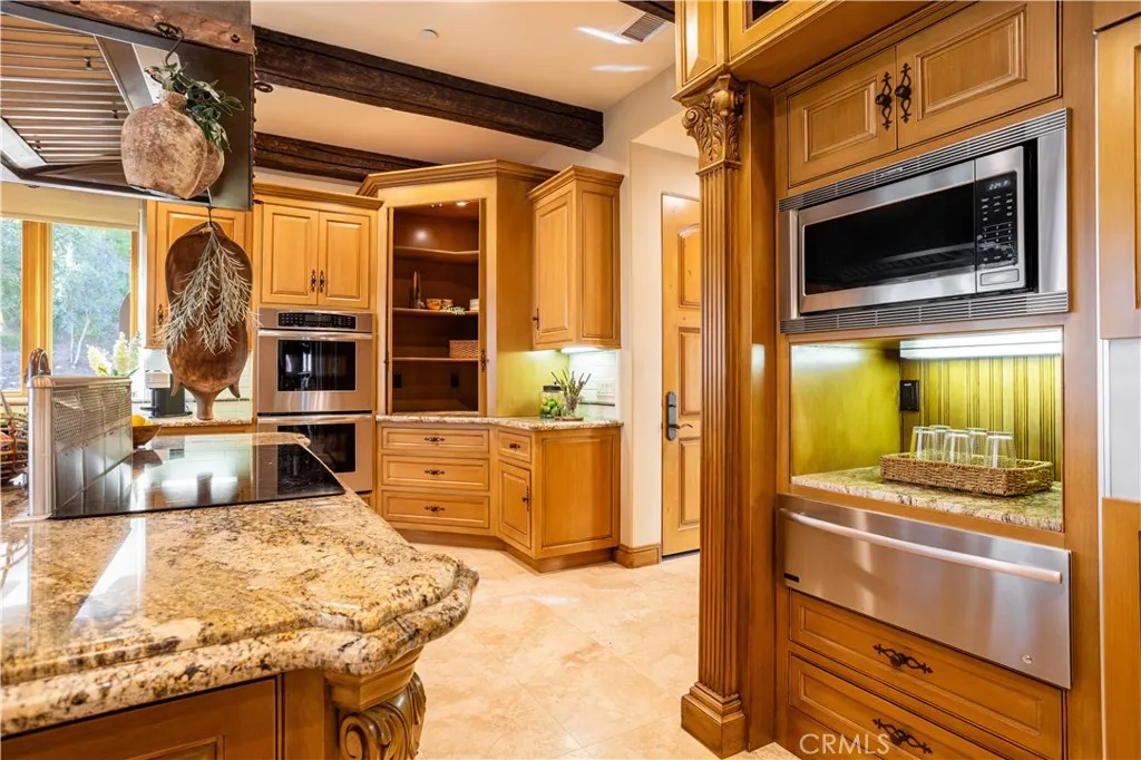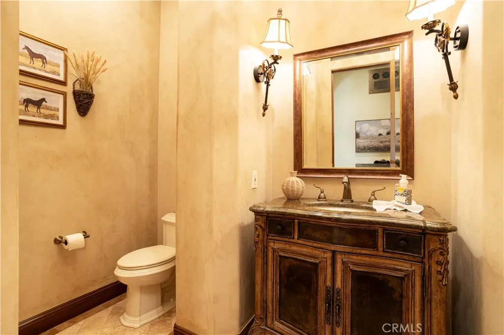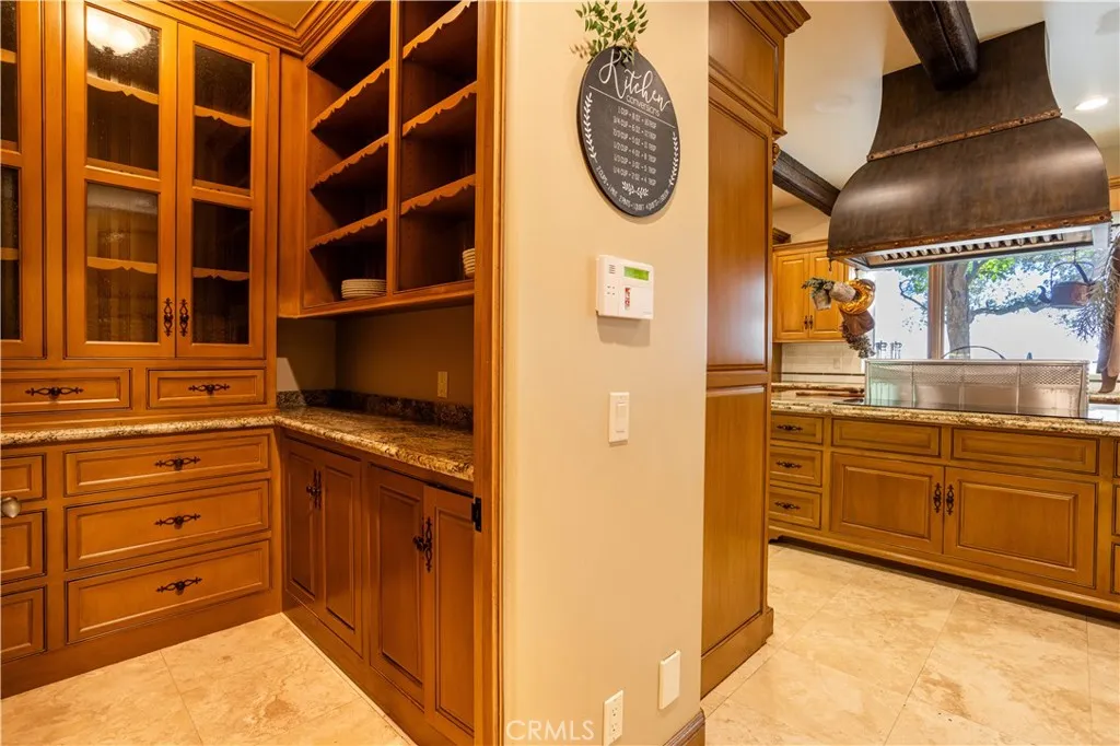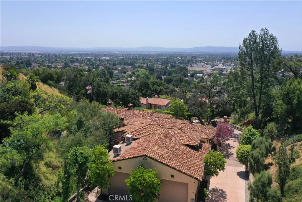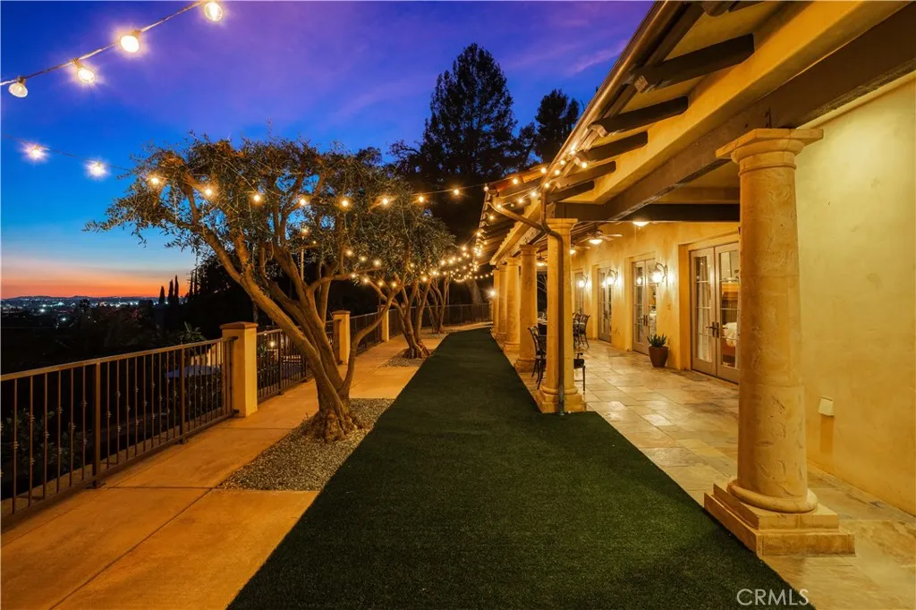 Perched majestically in the foothills of Monrovia, this one-of-a-kind Italian villa-inspired estate offers an unparalleled lifestyle defined by privacy, luxury, and sweeping city views. Sprawling across 13.12 acres, the property features a masterful 4,968 sq. ft. single-level main residence where architectural elegance meets seamless indoor-outdoor flow. The journey begins in a tranquil courtyard with a soothing fountain, leading through a grand foyer into a floorplan designed for sophisticated entertaining. The formal living room, marked by soaring vaulted ceilings and a massive stone double-sided fireplace, transitions into an expansive family room. This space is a connoisseur's dream, equipped with a full wet bar, wine cellar, wine fridge, and built-in cappuccino machine. Both rooms feature French doors opening to a vast covered patio framing breathtaking vistas. At the heart of the home lies a chef’s kitchen, meticulously appointed with professional-grade appliances, double ovens, a warming drawer, and a large center island with a new cooktop. Granite countertops, custom cabinetry, and a walk-in pantry provide abundant storage, while the breakfast area and built-in desk offer everyday functionality. The kitchen flows gracefully into the formal dining room, perfect for large-scale gatherings. The primary suite is tucked privately at the rear of the home, featuring a fireplace, cedar-lined walk-in closet, and a spa-like bathroom with dual vanities, a soaking tub, and a multi-head steam shower. Three additional bedrooms, two full bathrooms, and two powder rooms ensure comfort, while a dedicated office with built-in bookcases provides a quiet workspace in a private wing. Beyond the main residence, a 2,164 sq. ft. vehicle storage garage with an integrated workshop is topped by a charming 895 sq. ft. upper-level apartment. This guest unit includes a balcony, full kitchen, and two bedrooms, with infrastructure for an elevator. The lower tier is an entertainer's paradise, featuring a sparkling pool, outdoor fireplace, and a 520 sq. ft. pool house with its own kitchen, living area, bedroom, and bath. This estate is rounded out by a solar system, multi-zone HVAC, and a whole-house vacuum, offering a rare blend of Mediterranean inspiration and modern efficiency.