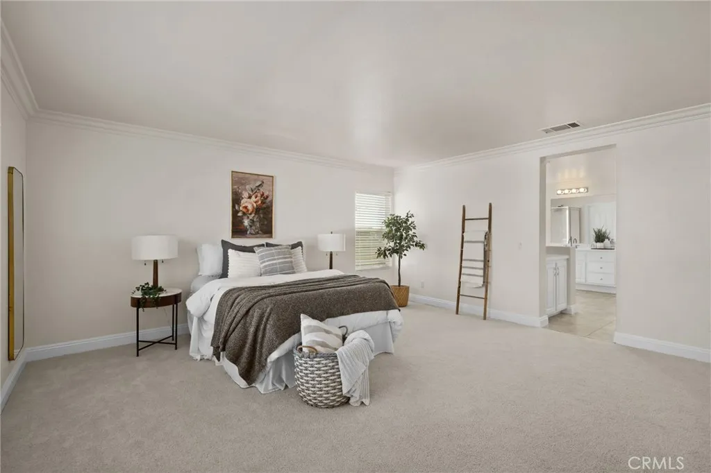 Welcome to this beautifully appointed home in the highly sought-after community of Eastvale, where timeless charm meets modern sophistication—with the added benefits of low taxes and no HOA. From the moment you arrive, you’ll be captivated by the meticulously landscaped front yard, featuring lush green grass and exceptional curb appeal that sets the tone for this stunning residence. Step inside to a bright and airy interior, enhanced by soaring ceilings, abundant natural light, and elegant crown molding throughout, adding a refined touch to every space. The formal living and dining rooms offer the perfect setting for entertaining, highlighted by an open-railing staircase and graceful architectural details. At the heart of the home, the stylish kitchen is designed to impress, featuring crisp white cabinetry, sleek quartz countertops, a center island, and built-in cooktop and oven—ideal for both everyday living and hosting gatherings. The adjoining breakfast nook flows seamlessly into the inviting family room, where sliding glass doors open to the expansive backyard. The cozy family room showcases a charming fireplace and media niche, creating a warm and welcoming space for relaxation and entertainment. A conveniently located main-floor bedroom and full bathroom provide flexibility for guests, multigenerational living, or a private home office. Upstairs, a spacious loft with elegant architectural cutouts offers versatile additional living space, perfect for a playroom, home gym, or second lounge. The expansive primary suite provides serene backyard views and features a luxurious en-suite bathroom with dual vanities, a soaking tub, a walk-in shower, and a generous walk-in closet. Two additional bedrooms share a well-appointed full bathroom with dual sinks, ideal for family living. Step outside to your private backyard retreat, complete with a charming gazebo, a large cement patio ideal for outdoor dining and entertaining, and a lush grassy area that creates a peaceful, park-like setting. Blending comfort, style, functionality, and the rare advantage of low taxes with no HOA, this exceptional home is ready to welcome its next owners. Don’t miss the opportunity to make it yours—schedule your private showing today!