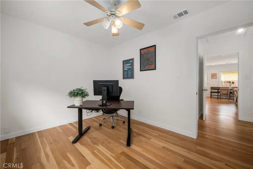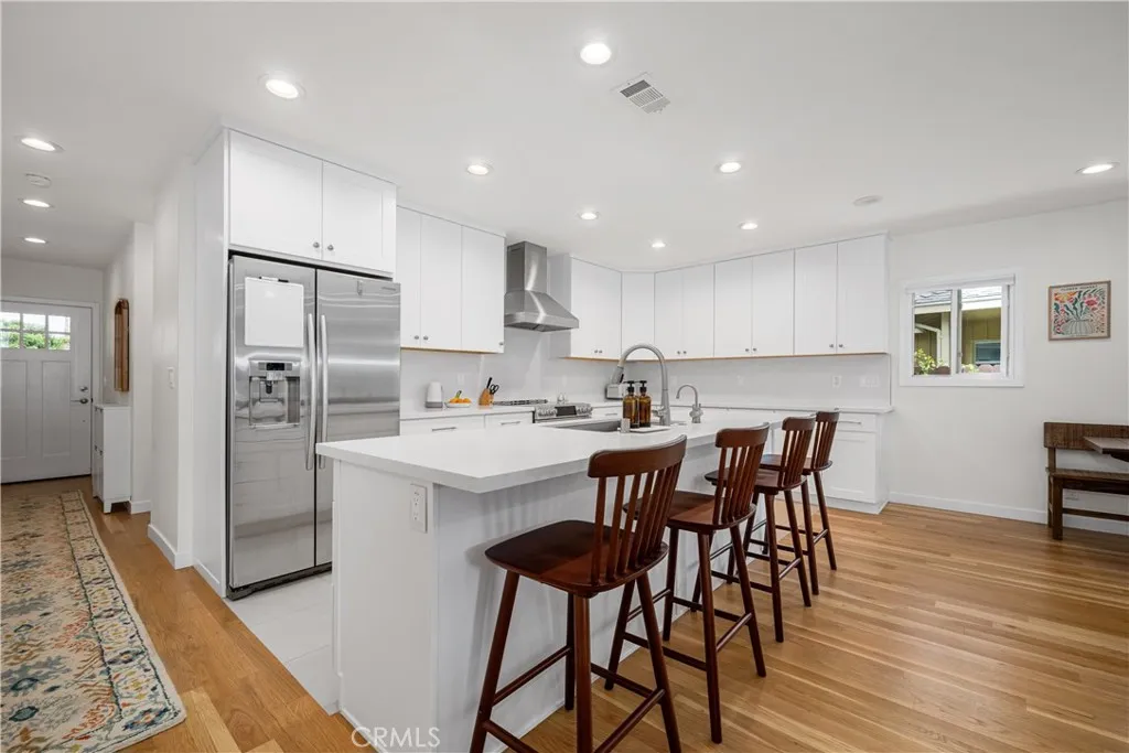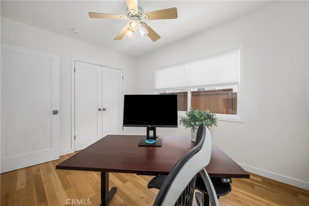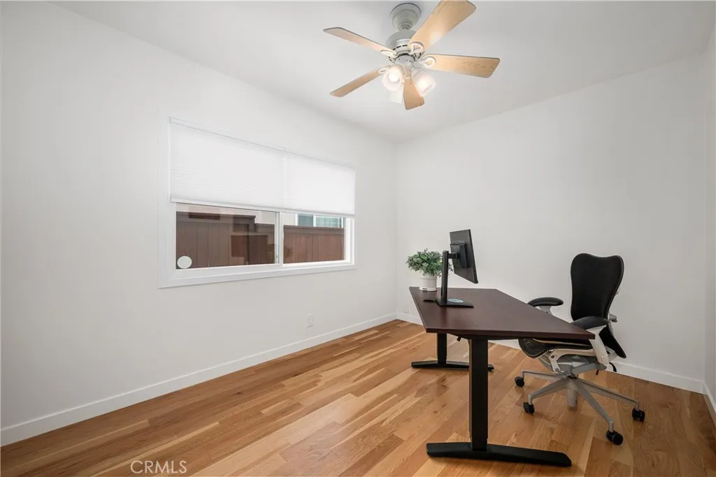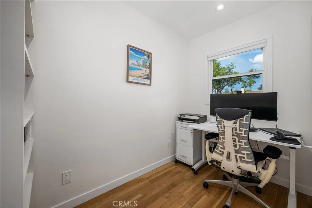 Reconstructed in 2024, this Plaza gem is situated on a picturesque tree lined street and offers an abundance of designer touches throughout. White Oak flooring greets you upon entry, moving to an open concept living space with sprawling center island kitchen complete with quartz counters and induction range. The living room offers wonderful backyard views, recessed lighting and an original wood burning fireplace. A generous primary suite is complete with adjacent en-suite bathroom which was designed with extra width and has impeccable finishes. Additional features include: central heat and A/C, large separate laundry room with a folding counter and plenty of cabinetry, dedicated office, guest half bath, dual pane windows throughout, and a fully finished garage. All of this is complemented by a serene, very private backyard—perfectly suited for entertaining. Enjoy access to highly desired Patrick Henry Elementary and Marshall Academy Of The Arts. This amazing property is proximate to dining, entertainment, golf courses, parks and the Long Beach Airport. If you are in the market for a home that looks and feels like new, this one is for you.