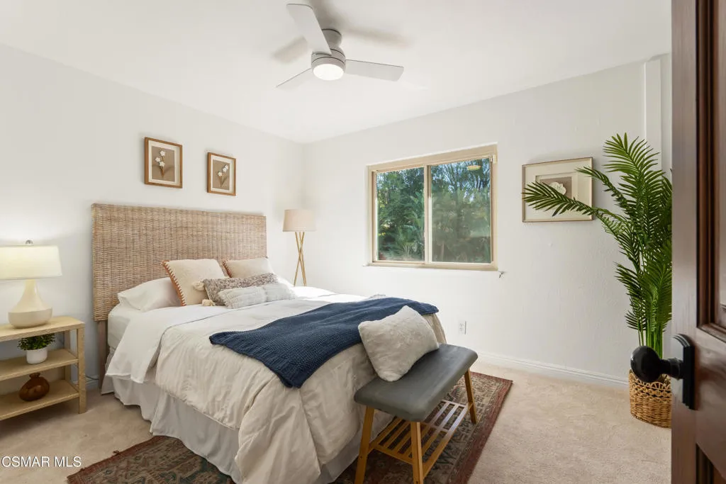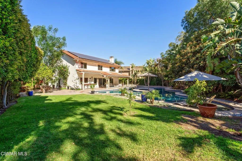 Looks can be deceiving... and this Newbury Park home proves it in the best way.From the street, it presents like a classic tract home. Step inside, and it quickly reveals itself as something entirely different. Thoughtfully upgraded, beautifully maintained, and full of unexpected moments, this home just keeps getting better the more you explore.The interior blends comfort with modern convenience. A spacious kitchen with a stunning quartzite island opens seamlessly to the family room, creating the perfect setting for everyday living and entertaining. Smart home features are integrated throughout, including a security system with smoke detectors, video doorbell, smart thermostat, wifi-enabled garage door, and a whole house water filtration system. Bathrooms have been tastefully updated, and fresh interior paint gives the home a clean, elevated feel.Upstairs, each bedroom captures serene mountain views, adding to the sense of privacy and retreat. And tucked away at the end of the hallway, a hidden bookcase door opens to a large bonus space. Whether you envision a fourth bedroom, office, studio, or game room, this flexible area adapts to your lifestyle.Then there's the backyard... and it truly steals the show.Set on a rare pie-shaped lot, the outdoor space opens up into one of the largest and most unique yards in the neighborhood. Designed for both relaxation and entertaining, it feels like your own private resort. A lagoon-style pool with an island spa and bridge creates a stunning focal point, complemented by upgraded lighting, and wifi-enabled controls. Two in-ground fire pits, an outdoor bar with honed marble counter, a dining patio with French doors, and an outdoor shower complete the experience. Mature landscaping, low voltage lighting, and mountain views create a setting that feels both peaceful and private, with ample space for future possibilities like an ADU.Additional highlights include fully paid solar, an upgraded electrical panel, Tesla charger, newer roof, and enhanced exterior finishes.This is a home that surprises you at every turn. Unique, functional, and designed for the way people actually live, it offers far more than meets the eye.