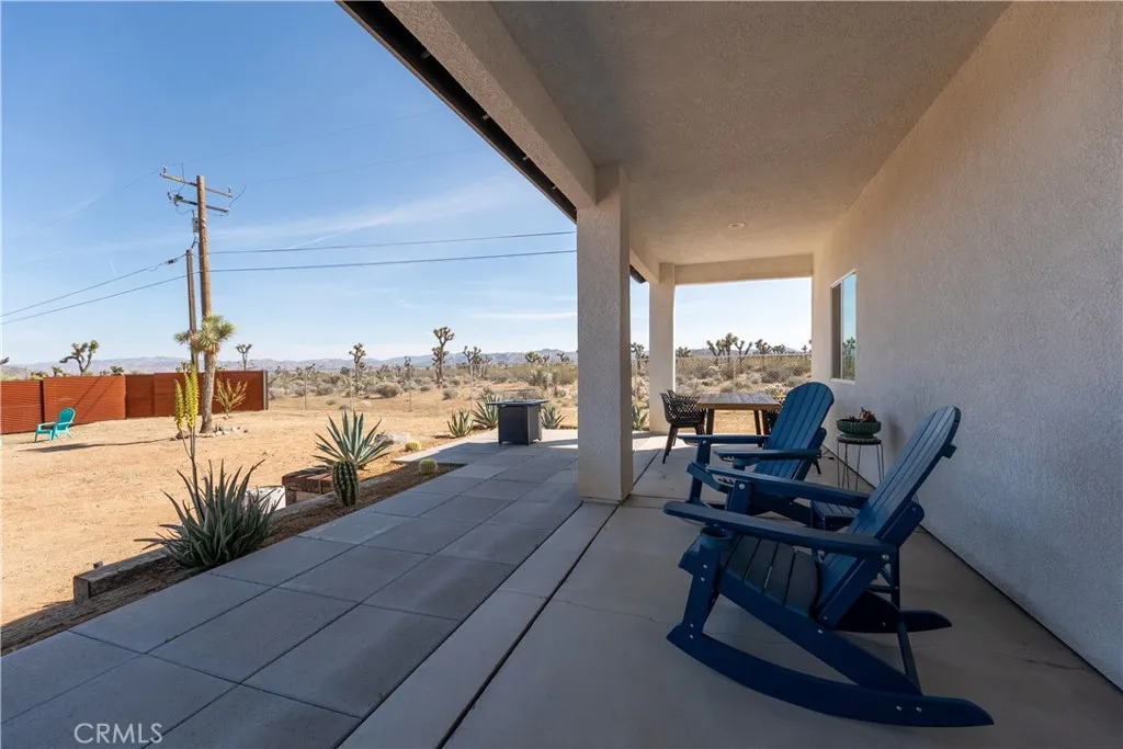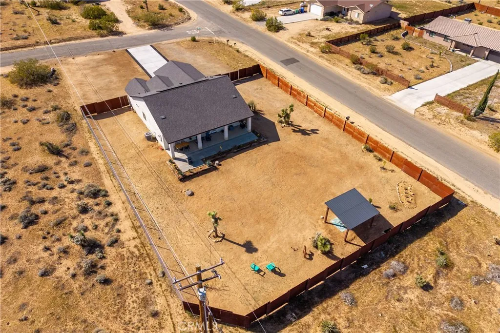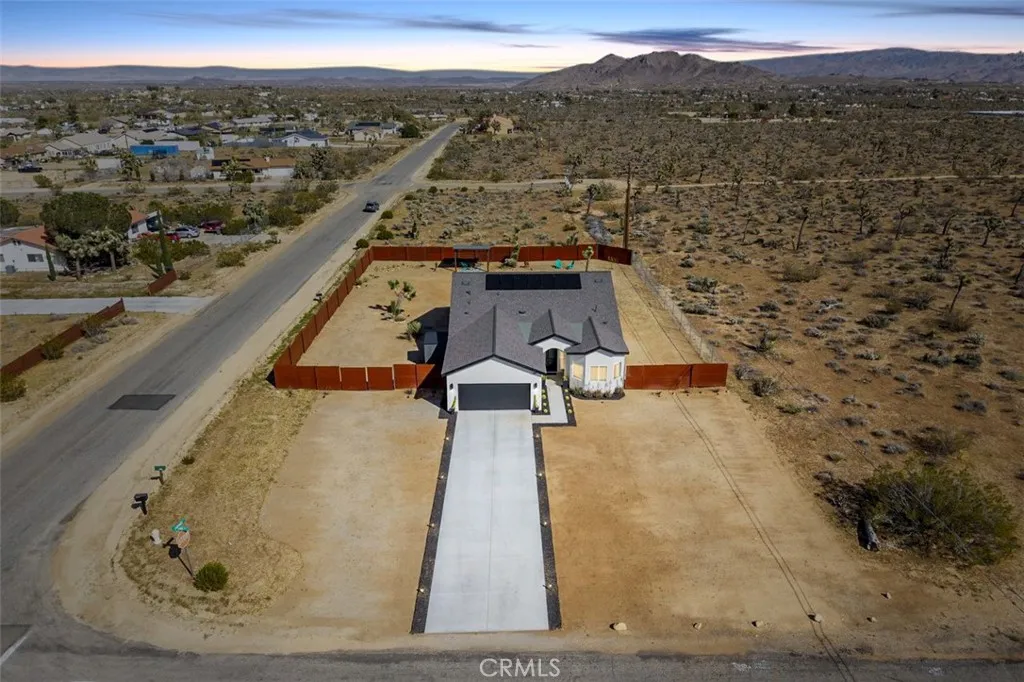 Welcome to this newer construction home set on a spacious half-acre lot, offering the perfect blend of modern comfort, privacy, and endless potential in a peaceful desert setting. Designed as a versatile retreat, this property provides room to expand, customize, and truly make your own—plus the option to purchase the adjacent lot for even greater opportunity. Enjoy a private and tranquil environment surrounded by wide-open desert views, natural Joshua trees, and partial views of Mount San Jacinto, creating a serene backdrop and open-sky living. Inside, the home features a bright, open floor plan with 9-foot ceilings, creating an airy and inviting atmosphere. The kitchen is equipped with stainless steel appliances and flows seamlessly into the main living area, ideal for both everyday living and entertaining. The outdoor space offers exceptional flexibility and usability. The fully fenced yard includes landscaped and hardscaped areas, along with a gazebo with lighting, perfect for relaxing or hosting. With ample space, the property can easily accommodate a pool or spa, ADU, RV or OHV parking, and expanded outdoor entertaining areas. Additional features include an owned solar system to help keep energy costs low, EV charger in the attached 2-car garage, Ecobee HVAC system, Wyze doorbell camera, paved driveway access, and a backyard storage shed. With no HOA, generous land, and a flexible layout, this property is ideal as a primary residence, vacation home, or investment opportunity, offering both immediate comfort and long-term potential in a quiet, growing area.