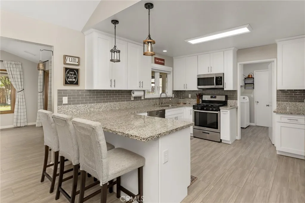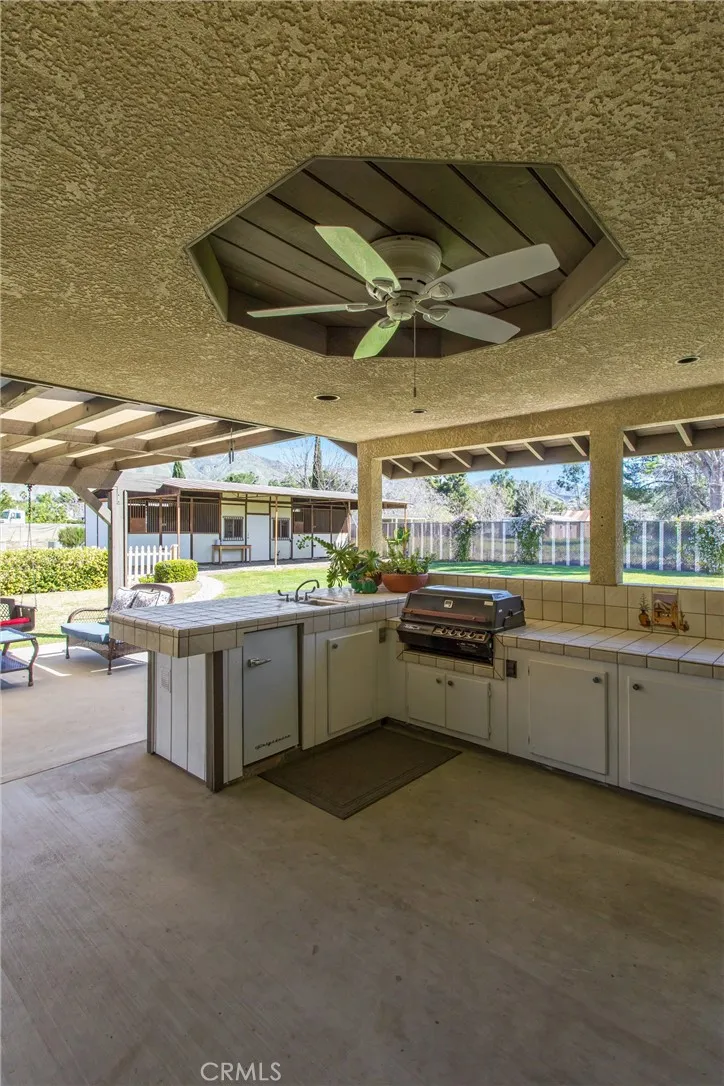 Horse lovers, car enthusiasts, and those craving space and versatility—welcome home. This nearly one-acre property offers rare multi-use potential with horse stables, a five-car drive-through garage, and a beautifully updated single-story home. Thoughtfully designed, this custom-built 3-bedroom, 3-bath, approximately 2,300 sq ft home features an updated kitchen, a spacious great room, and a flexible office or workshop space. Light-filled interiors and modern updates create a clean, comfortable, move-in ready environment ideal for both everyday living and entertaining. The primary suite is a private retreat, complete with his-and-hers closets, dual sinks, a walk-in shower, and a linen closet. Outdoors, the lifestyle truly comes to life with a beautifully landscaped yard, raised garden beds, and a covered patio with an outdoor kitchen—perfect for relaxing or hosting, all framed by lush greenery and mountain views. Equestrian amenities include three horse stalls and ample space for a corral or riding area, offering the rare ability to keep animals on your own property. The five-car drive-through garage provides exceptional flexibility for car collectors, RV storage, equipment, or even a home-based business. Properties that offer this combination of land, functionality, and lifestyle are hard to find, making this an ideal opportunity for those seeking a small homestead, space for hobbies, or simply room to live the way they want.