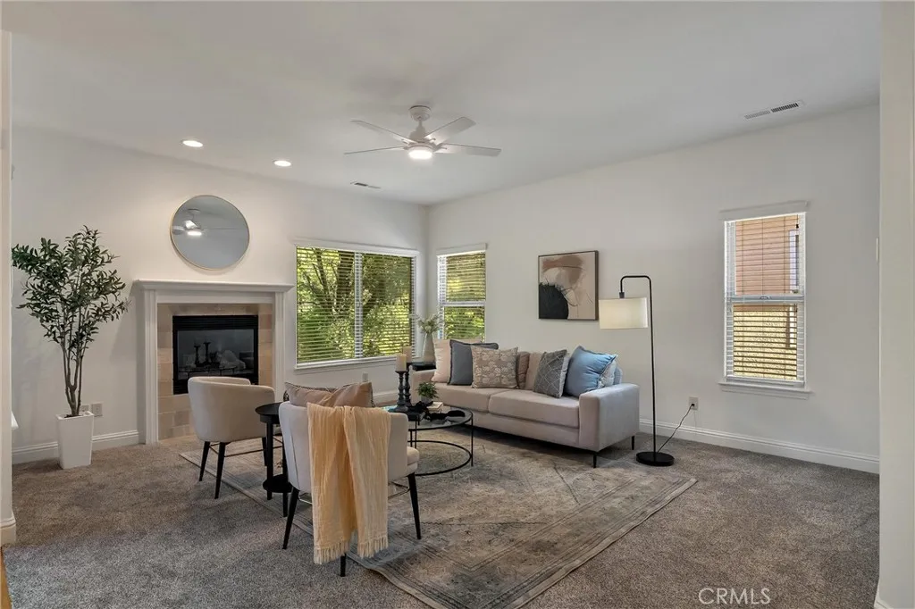 Welcome to your peaceful retreat in the highly desirable Canyon Oaks Country Club community! Tucked away on a quiet cul-de-sac, this adorable and move-in ready home offers privacy and serenity with no neighbors across the street and a beautiful natural backdrop of trees, a seasonal creek, and tranquil surroundings. Step inside to a bright, clean, and welcoming main level designed for comfortable living. The spacious kitchen opens seamlessly to the family room and features a peninsula island with bar-top seating, perfect for casual dining or entertaining. Just off the dining area, a sliding glass door leads to the first balcony where you can relax and enjoy the peaceful nature views. The family room offers a cozy fireplace and more picturesque views of the surrounding greenery. Also on the main floor is a versatile bedroom that would make a wonderful home office, along with a full bathroom, laundry room, and convenient access to the 2-car garage. The lower level continues to impress with an incredibly spacious layout. You’ll find an additional storage area that could easily be used for crafts, hobbies, or extra organization. The large guest bedroom features a walk-in closet and sits next to a full guest bathroom. At the end of the hall is the expansive primary suite, complete with an en-suite bathroom and its own private balcony overlooking the peaceful natural setting. Recent updates and features include newer fixtures, carpet, interior paint, dishwasher, patio tile, hardwood flooring, and a whole house vacuum system. This charming home offers the perfect blend of comfort, nature, and low-maintenance living — all in one of Chico’s most sought-after gated communities. A truly beautiful and peaceful place to call home.
