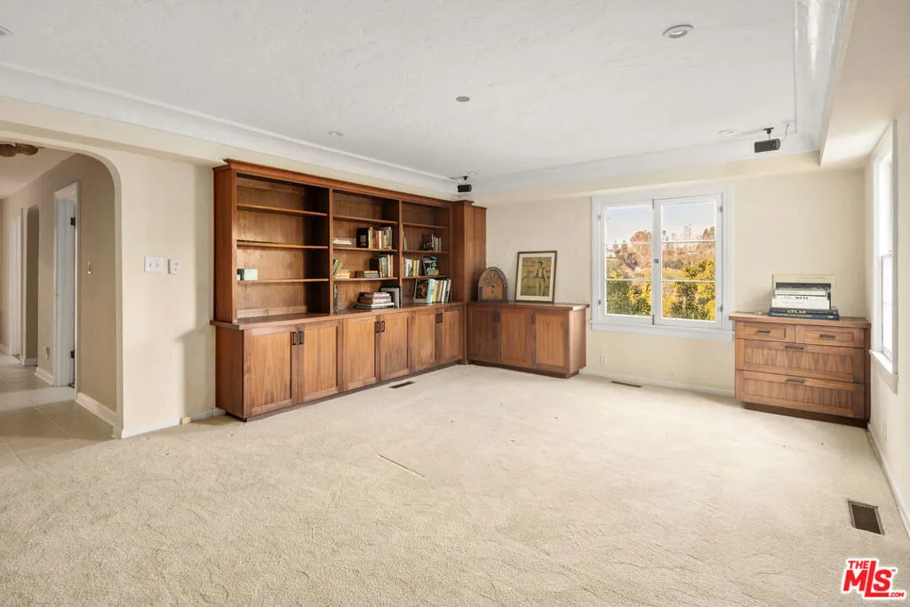 Wonderful opportunity to live in one of the original Uplifters Ranch houses built in 1927. Coddled amongst mature California Oaks, this three level, spacious half-timbered stucco house is placed near the top of the Rustic Canyon rim embracing canyon views from most rooms. When entering the front door one experiences the most impressive ballroom like living room, ordained with a hotel scale fireplace, hardwood and floor to ceiling windows making the ascent worthwhile. The main level also includes the formal dining room, a modern kitchen and office leading all embracing the outdoor gardens. The upper level has three bedrooms and two baths all facing canyon views, including a comfortable main bedroom suite. The lower level with the original unique basement bar and circular card room is part of a family room and is attached to two bedrooms and a bath, potentially can be used as a separate apartment with its own entrance. A two car garage is located at the street level. The house is in the heart of Rustic Canyon adjacent to the Rustic Canyon Park.