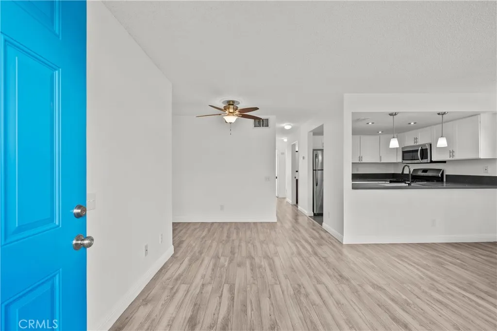 Welcome to this move in ready 2 bedroom, 2 bathroom condo with a spacious and comfortable layout. The home has been refreshed with new paint and new flooring throughout, which gives the interior a clean and bright feel. Large windows bring in plenty of natural light and create a warm and inviting space. The updated kitchen features white shaker cabinets and quartz countertops along with clean modern finishes. The layout works well for everyday living and connects nicely with the living and dining areas, which creates an open and functional space. The floor plan includes two bedrooms and two bathrooms, which offers flexibility for guests, family, or a home office. The unit also includes an in unit washer and dryer and a newer HVAC system for year round comfort. Located in a gated community with amenities including a pool, clubhouse, and basketball court. The complex is well lit at night and offers plenty of parking for residents and guests. The location provides quick freeway access and is close to shopping, dining, and everyday stores. Great location with convenient access to daily needs. Come take a look and make this your home.