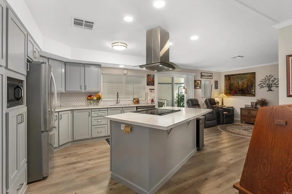 Beautifully Remodeled VIEW Home in Premier 55+ Community! Enjoy resort-style living in this tastefully upgraded home with sweeping views, ideally located in a sought-after, rent-controlled 55+ community. Inside, you’ll find a thoughtfully designed floor plan featuring both a spacious living room and separate family room—perfect for entertaining or relaxing. Each bedroom offers its own attached bathroom, including a generous primary suite with dual sinks and a walk-in closet. Crown and baseboard molding, dual-pane windows, and plantation shutters add a refined touch. Both bathrooms have been updated beautifully. The remodeled island kitchen is a standout, complete with soft-close cabinetry, recessed lighting, induction cooktop, Bosch dishwasher, newer appliances, and a large pantry. Induction cookware can be included as an added bonus! An indoor laundry room with high end LG washer and dryer on raised pedestals with under storage drawers included adds everyday convenience. Step outside to enjoy multiple outdoor living spaces, including a covered porch, private patio, and beautifully arranged sitting areas. The spa with privacy screens conveys —creating your own peaceful retreat. There are TWO storage sheds that provide ample storage, one has conveniently been installed with electricity and lighting! Located in Rancho Vallecitos, a 5-star, resort-style community offering incredible amenities: clubhouse, pool & spa, fitness center, library, billiards, game and craft rooms, putting green, dog park, and more. Active social calendar and scenic surroundings enhance the lifestyle. Space rent is $719.26 and subject to city rent control.