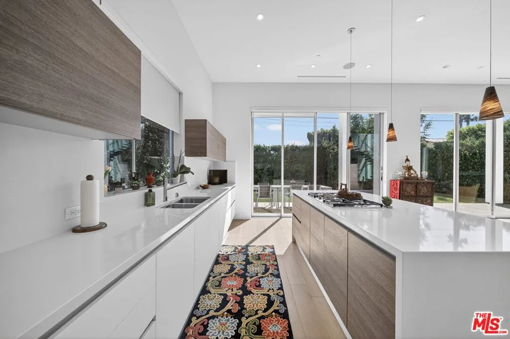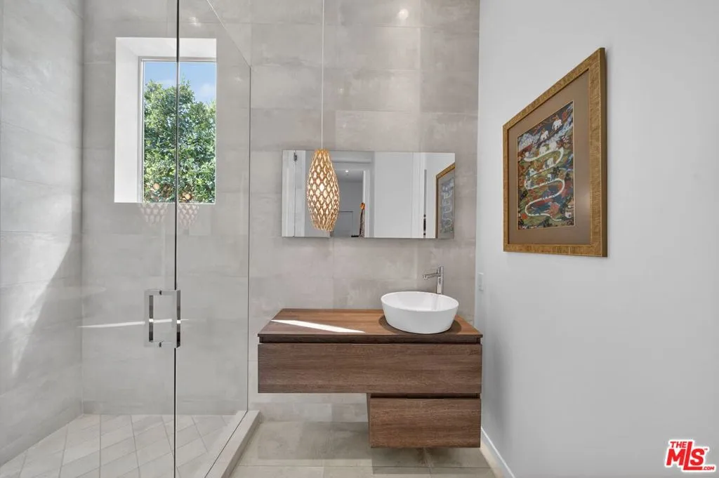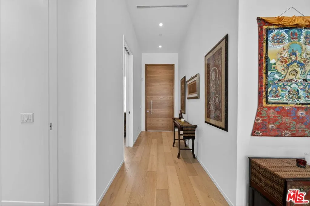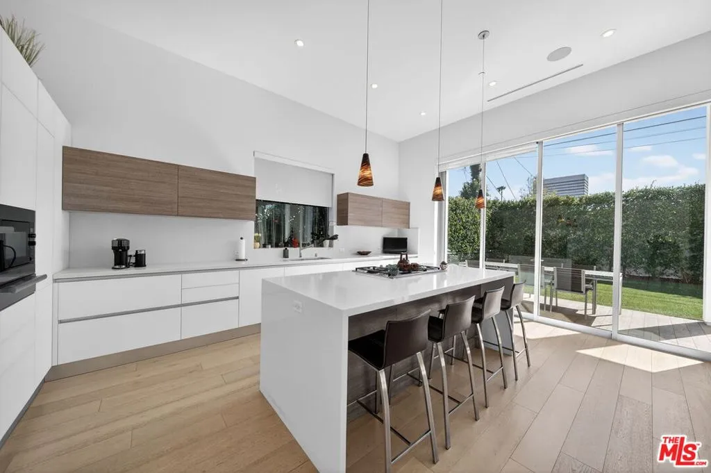 Stunning Contemporary Architectural in Prime Beverly-Grove Location. Built in 2014 with exceptional craftsmanship and the finest materials, this striking 2-story contemporary residence offers 4 bedrooms and 4 bathrooms, blending modern design with effortless indoor-outdoor living. Dramatic 12-foot ceilings, expansive floor-to-ceiling pocket sliding glass doors fully retract to open the entire back of the house, creating a true indoor-outdoor living experience ideal for entertaining. Luxury wide-plank, solid hardwood floors throughout. A stunning architectural focal point, the floating staircase is set within a breathtaking 2-story atrium, enhanced by designer pendant lighting by David Trubridge, delivering both elegance and architectural presence to the space. The chef's kitchen is a showpiece, featuring a professional Scavolini designed cabinetry, premium Miele appliances, and a large center island. Open to the expansive living room with a gas fireplace, the space is thoughtfully designed for both everyday living and seamless entertaining. Pianca custom Italian closets are featured throughout, offering refined and functional storage. The primary suite serves as a private retreat, complete with a spa-inspired bathroom featuring a soaking tub, glass-enclosed shower and custom Adatto Casa Italian cabinetry. Enjoy multiple outdoor living spaces, including north-facing terraces with views of the Hollywood Hills and a south-facing terrace overlooking the Wilshire corridor. A private jacuzzi splash pool enhances the outdoor experience, ideal for relaxing or hosting. Additional features include a 2-car attached garage and modern systems throughout. Ideally located just moments from The Grove, Beverly Center, 3rd Street shops, the Academy Museum, LACMA, the Petersen Automotive Museum, and the new Fairfax/Wilshire Metro Station placing the very best of Los Angeles at your doorstep.