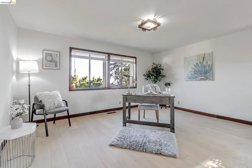 Splendid designer property. Gorgeous high ceiling for living. dinning and loft area. Panoramic view from living room and decks. New Flooring. New 50 years roofs with the warranty. The office and half bath are in street level. 3 bedrooms and 2 bathrooms upstairs offer the bay view. Walk to Madera elementary school and Berkeley golf course field. family room and 2 bed 2 bath downstairs has extra private entrance. Nice chance to living there and has rental income. A lot of wood features.