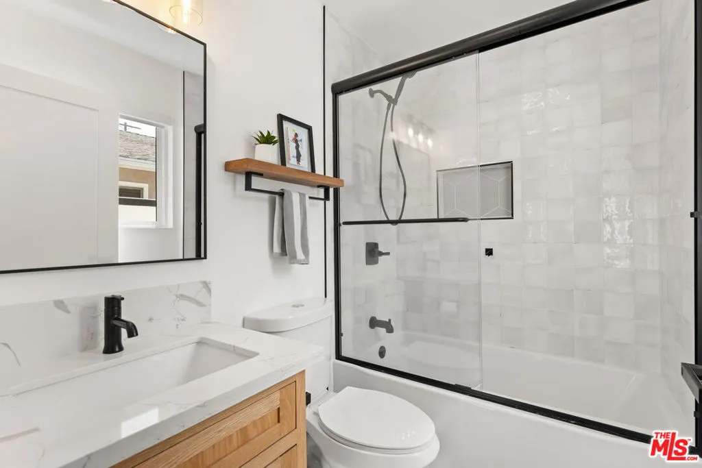 Discover a truly exceptional residence where designer sophistication meets effortless comfort. This completely remodeled 3-bedroom, 3-bath home showcases impeccable craftsmanship and thoughtful detail at every turn, offering a rare opportunity to own a move-in-ready masterpiece. An open floor plan creates a seamless flow, enhanced by abundant natural light and recessed lighting throughout. The living room captivates with a stunning wood accent wall and expansive cantina-style doors that open wide to a private outdoor retreat. Step onto the deck and patio, where a high-end, 4k aluminum pergola with built-in recessed lighting and a louvered roof allows you to tailor the ambiance, from sunlit afternoons to softly illuminated evenings. The chef's kitchen stands as the heart of the home, featuring white shaker-style cabinetry, quartz countertops, a generous island, ample storage, and a built-in wine fridge, perfectly designed for both everyday living and elegant entertaining. The primary suite serves as a serene sanctuary, complete with a gorgeous dual vanity, a beautifully built-out walk-in closet, and sliding glass doors that lead directly to the lushly landscaped backyard. A second bedroom offers its own en-suite bath, while the third bedroom enjoys convenient access to a stylish hallway bath, providing comfort and privacy for family and guests alike. Step outside to an entertainer's dream. The outdoor kitchen boasts a built-in grill and TV, creating the perfect setting for peaceful evenings under the stars or spirited game-day gatherings. Drought-tolerant landscaping, artificial turf, and privacy hedges ensure beauty and ease of maintenance year-round. The attention to detail continues with a beautifully landscaped front yard adorned with lemon and olive trees, illuminated pathway lighting, and an expanded front porch that offers a warm and elegant welcome. A two-car garage with epoxy flooring and a spacious interior laundry room with side-by-side washer and dryer and additional storage complete the home's exceptional offerings. This light-filled, designer-perfect residence blends luxury, comfort, and functionality into one remarkable opportunity. Homes of this caliber rarely become available. This is the one you have been waiting for.