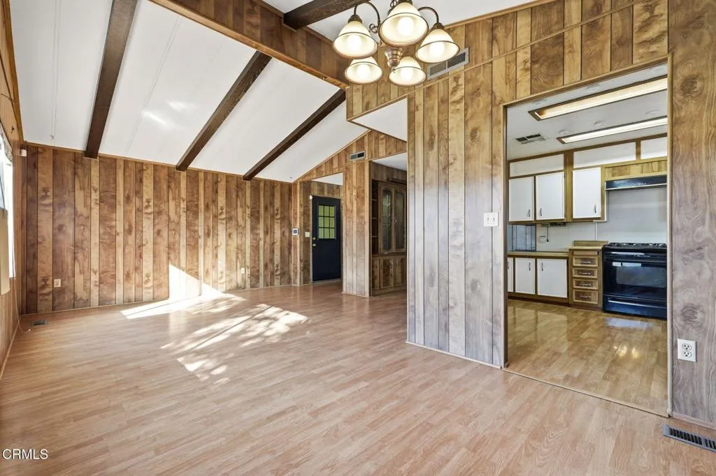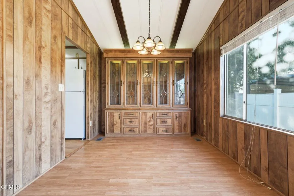 OPPORTUNITY AT MOUNTAIN VIEW ESTATES | SPACE 28Bring your vision to this spacious 2-bedroom, 2-bathroom double-wide home in Upland's highly regarded Mountain View Estates. If you are looking for a project with great 'bones' and a floor plan that feels like a traditional house, this is the one!THE INTERIOR: The expansive living area features impressive vaulted ceilings and dark-stained exposed beams, creating a spacious, lodge-like atmosphere. The formal dining area includes a large built-in hutch with leaded glass cabinetry--perfect for storage or a coffee station.THE SUITE: A true highlight is the primary bedroom, which is exceptionally large and features a massive walk-in closet and an en-suite bathroom with a double vanity and great natural light.EXTERIOR & PERKS: Rare for this park, this unit includes a 2-CAR ATTACHED GARAGE (not a carport) with direct access. Enjoy a long, covered front porch and a fenced side yard area.LOCATION: Located in a desirable all-age community (not 55+) featuring a pool, spa, and recreation center. Directly across from San Antonio Regional Hospital and minutes from the I-10. Sold as-is--don't miss this incredible value!