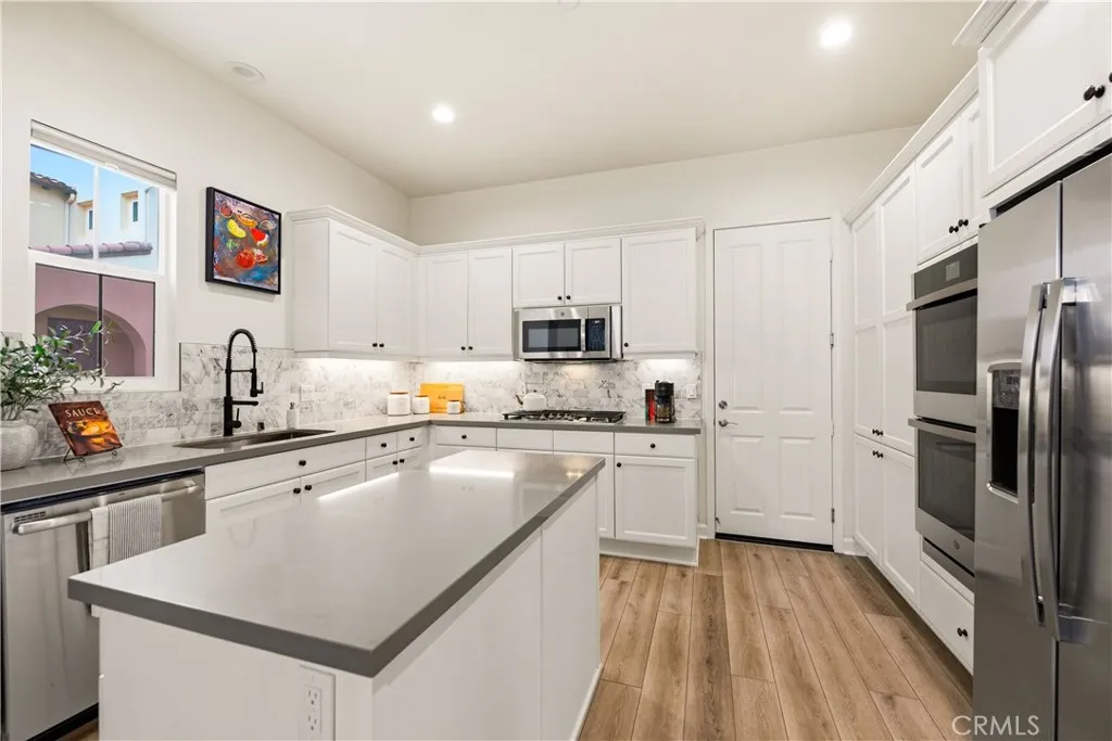 Beautifully crafted, detached home inspired by classic Spanish Cottage architecture, built in 2020 and nestled within the sought-after gated enclave of The Gallery at River Ridge. Offering 3 bedrooms, 2.5 bathrooms, plus a spacious loft this residence showcases a bright, open-concept design enhanced by soaring ceilings and an abundance of natural light. The kitchen is both stylish and practical, featuring crisp white cabinetry, an upgraded single-bowl utility sink with upgraded faucet, ample storage, and sleek gray quartz countertops accented by a modern, luxurious subway tile backsplash. The kitchen flows effortlessly into the dining and living areas, creating a comfortable and connected space, ideal for both everyday living and entertaining. Large sliding glass doors open to a private patio, extending your living space outdoors and taking full advantage of Oxnard's year-round coastal weather. Upstairs, the expansive primary suite serves as a relaxing retreat, complete with dual walk-in closets and a spa-inspired bathroom featuring an oversized soaking tub and walk-in shower. Two spacious additional bedrooms, a full bathroom, a dedicated laundry room, and a versatile loft round out the second level. The loft offers flexibility for a home office, media room, or potential fourth bedroom. Step out onto the generous balcony to unwind and enjoy the fresh coastal air. Thoughtful upgrades throughout the home include a 220V EV charger, upgraded laminate flooring, plush new carpet in the bedrooms, a cozy fireplace with designer tile surround, artificial turf landscaping, and an epoxy-coated, extra-wide garage. Residents of The Gallery at River Ridge enjoy access to resort-style amenities such as a pool and spa, clubhouse, outdoor fireplace, scenic walking paths, lush greenbelts, and a neighborhood park with playground. Ideally situated near River Ridge Golf Course and the Dallas Cowboys summer training camp, this home also offers convenient access to The Collection at RiverPark, Whole Foods, Seabridge Marina, Ventura Harbor, Channel Islands, local beaches, farmers markets, hiking trails, and the 101 Freeway—bringing together comfort, convenience, and coastal California living at its best.