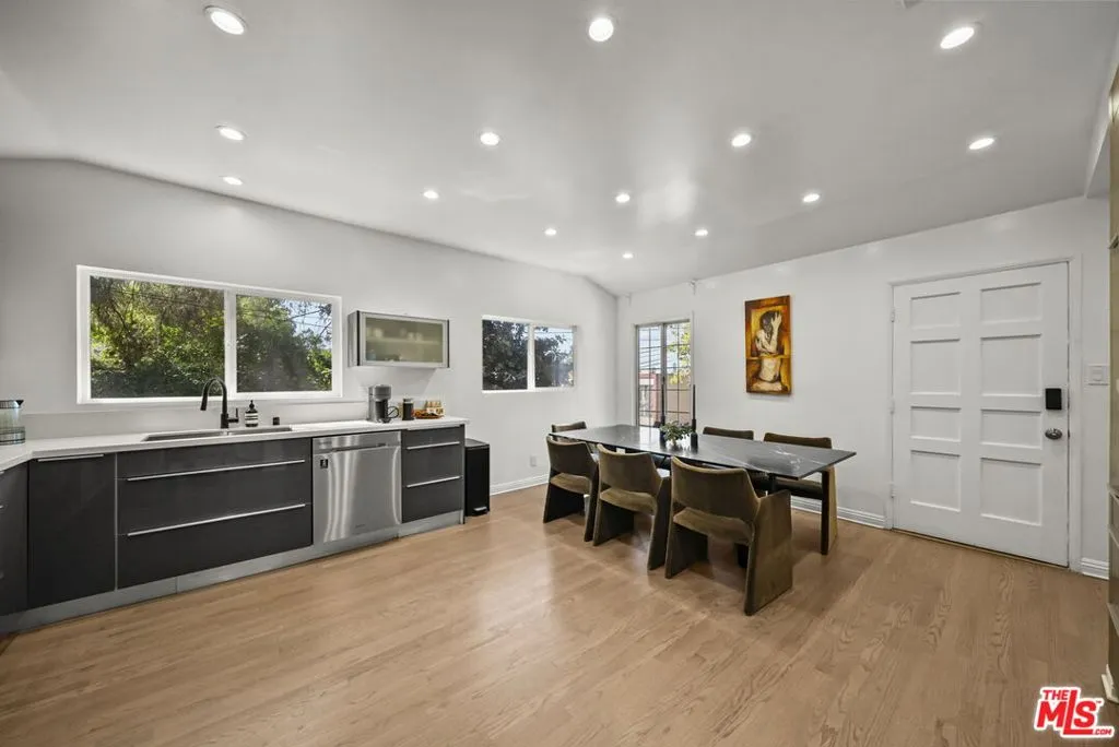 Nestled in the heart of the historic Hollywood Dell, this gem offers a rare blend of modern sophistication and tranquil canyon living. This meticulously remodeled contemporary residence features an open concept floor plan defined by soaring ceilings and rich hardwood floors. Floor to ceiling glass sliders in the main living area frame breathtaking, unobstructed views of the Los Angeles city lights and rolling hills. The gourmet kitchen serves as the centerpiece of the home, boasting sleek Caesarstone countertops, designer cabinetry, and premium stainless steel appliances.The main residence includes three spacious bedrooms and two and a half bathrooms, all updated with high end finishes and modern systems. Adding incredible value to this property is a fully permitted, 500 square foot detached Accessory Dwelling Unit. Complete with its own bedroom, bathroom, and private viewing deck, this versatile space is perfect for a creative studio, guest house, or high yield rental opportunity. Experience the ultimate California lifestyle with multiple outdoor entertaining decks and the convenience of an attached garage. Located just minutes from the Hollywood Bowl and Griffith Park hiking trails, this home provides a secluded sanctuary without sacrificing proximity to the best dining and entertainment in the city. With newer HVAC, updated plumbing, and turn key interiors, this Hollywood Hills gem is ready for its next chapter.