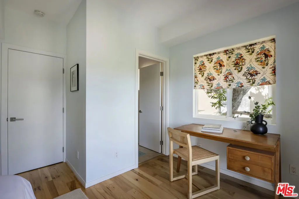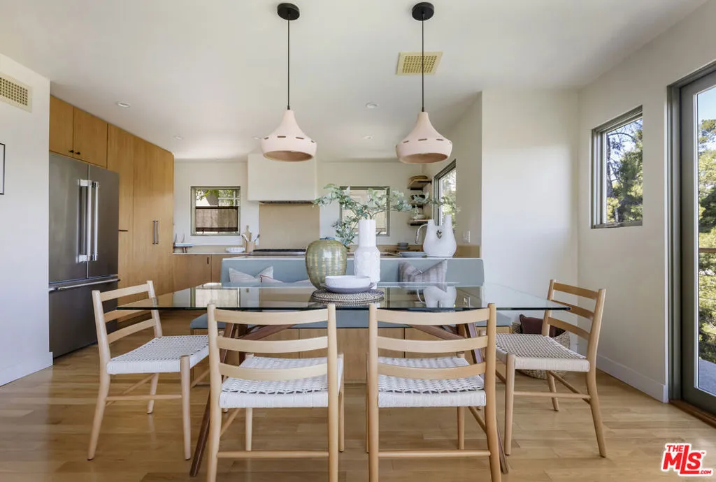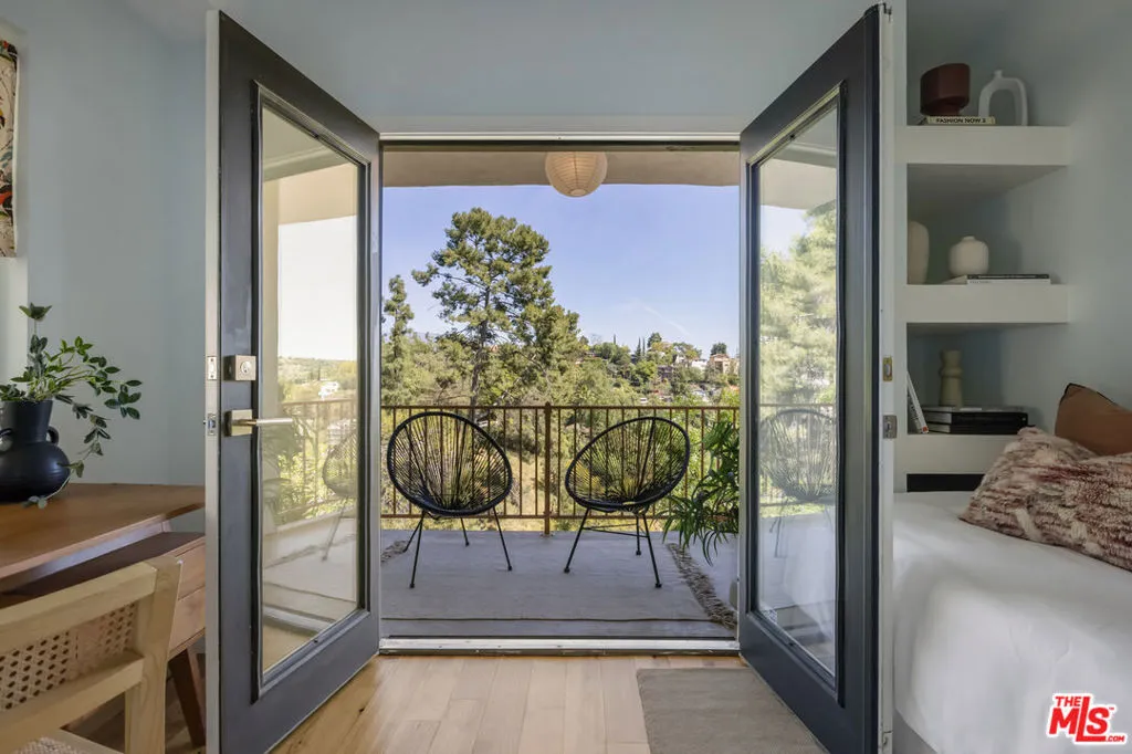 Amongst the verdant tree tops and sweeping views of Mount Washington, sits this modern and thoughtfully designed four-bedroom, three-and-a-half-bath home. Upon entry, you are greeted by glass doors leading to a terrace and a picture window that frames the surrounding hills. The home is oriented away from the street for maximum privacy. The main level offers ample space for entertaining and dining. Thoughtfully designed built-ins provide stylish seating, while the modern and open kitchen showcases elevated countertops, sleek cabinetry, updated appliances, and bespoke fixtures and details. The half bath off the kitchen does not sacrifice aesthetics: its pink custom sink sits above gorgeous clay tile flooring, offering a stylish powder room for guests. On the second floor, there's a living room complete with built in bookshelves and plenty of space to settle in for the evening to watch a movie. The nearby three bedrooms all feature California closet systems, which help keep you organized and make the rooms all feel functional. A laundry room and a bathroom are just off the main hallway, and one bedroom has an en suite full bath and a private balcony. The home's third level is entirely dedicated to the expansive primary bedroom and bathroom, creating a sanctuary with plenty of space to customize, making it your ultimate place of respite after a long day. Complimented by a walk in closet and a recently remodeled bathroom with oceanic blue tile. The balcony off the primary bedroom provides direct access to the two lower wooden decks (rebuilt in 2024). Designed for al fresco dining, lounging, and taking in the views among the mature landscaping, these decks maximize the outdoor and yard space this hillside home affords you. A two-car garage with direct main-level access completes the space. Located within the coveted Mount Washington school district, this home is desirable for its serene landscape and proximity to the vibrant neighborhoods of Highland Park and Eagle Rock.