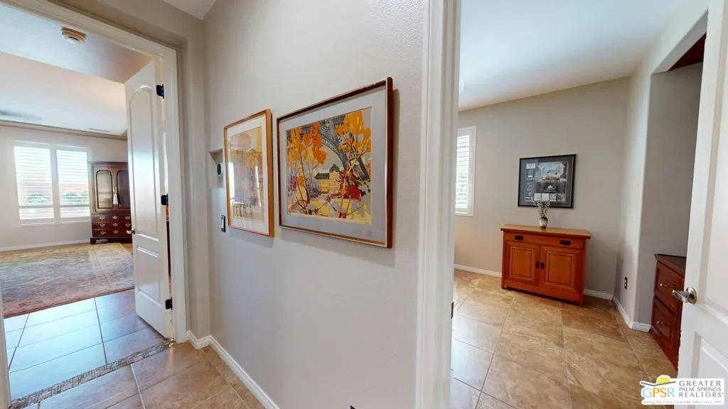 OWNED SOLAR! Beautifully maintained and tastefully updated for comfort and energy efficiency. This 3 Bedroom and 3 Bath, 2184sf, single level home is located in the gated community of Tuscany at Rancho Mirage. This home features 9' ceilings and custom tile floors throughout. The solar tubes in the 3 bathrooms, hallway, laundry room and garage bring in an abundance of natural light. The plantation shutters and Low E glass are both stylish and energy efficient. The updated Chef's Kitchen features custom stainless steel appliances and granite counters and double oven with convection. The cabinet doors and drawers throughout the home are all soft close. The Great Room features a fireplace with tiled surround and hearth and a custom built-in TV cabinet. 5 closets have custom organizers as well as the garage. The Casita, with its updated bath, has its own private entrance from the front patio. The hall bath has been updated as well. This home has a stunning unobstructed view of Mt. San Jacinto from the Casita, the Den and the very private walled and gated front patio. At the rear of the home is an in-ground saltwater Pebble Tec pool and spa with waterfall and both are heated with their own solar thermal collectors and a backup gas heater. There are three majestic 30 foot tall Palms near the pool as well as four other trees on the property. The third bedroom is currently being used as an office with custom built desk and cabinetry. The ceiling fans throughout have all been upgraded. The primary suite has access to the pool and quartzite tiled patio. The primary bath includes the stall shower, the soaking tub, double vanity, water closet and a spacious closet. The HOA is a very reasonable $235.00 per month that includes cable and internet. Tuscany also includes a park, the community pool and spa and dog park!