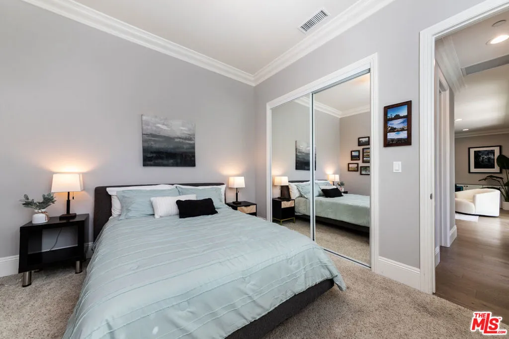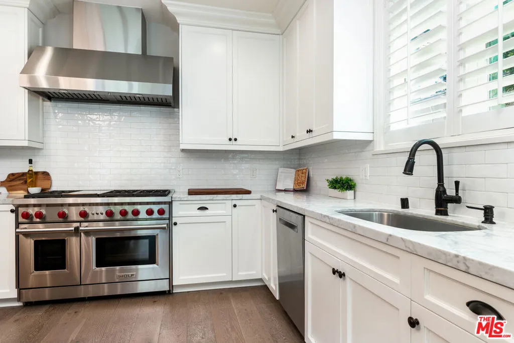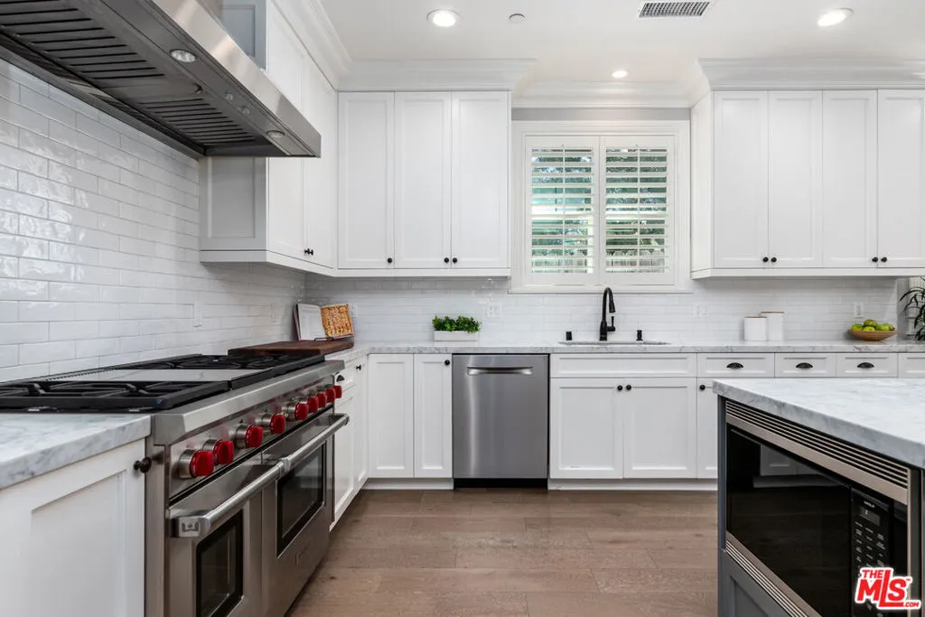 Comfort, luxury and tranquility meet in this bright and spacious pool home located on a beautiful tree-lined street in a desirable area of Burbank. The majority of the home is 2017 new construction followed by thoughtful upgrades to enhance year-round indoor/outdoor SoCal living. As you enter past the professionally landscaped grassy front yard, through the custom door and vaulted entryway, take a moment to soak in just a few of the special details this open airy living space has to offer: formal dining area overlooking your own seedless navel orange tree, spacious living room with an expansive sliding door leading to the peaceful backyard, and a beautiful gourmet kitchen featuring a custom-made massive island with built-in cabinetry, marble countertops, stylish light fixtures, and a walk-in pantry. Top-notch stainless-steel appliances including Sub-Zero fridge, Bosch dishwasher, Wolf 48" 6-burner with griddle gas range with convection oven, vent hood, and drawer microwave. The backyard is truly an entertainer's oasis - private and lushly landscaped with a sparkling pool and spa. A large covered patio with remote shades and built-in heaters lends to year-round relaxing, grilling, and dining al fresco. Home has great flow with an open airy feel enhanced by 9' high ceilings, 8' interior doors, LED recessed lighting, abundance of double pane windows, and white oak engineered hardwood flooring through main area and upgraded carpet in bedrooms. The first level has three bedrooms, two full bathrooms, and laundry room with included LG washer & dryer. The second level has a full bathroom, a bonus room with custom built shelving currently being used as an office. Adjacent is the light-filled primary suite retreat with luxurious spa-like bathroom featuring double sinks & make-up vanity with marble countertops, free-standing soaking tub, oversized multi-head shower with bench, and large walk-in closet with even more built-ins. The direct access garage with high ceilings has a custom built system with deep cabinetry and upgraded Floortec flooring. See virtual tour for more details. This is an ideal location minutes from local favorites, studios, freeways, parks, cafes, and more.