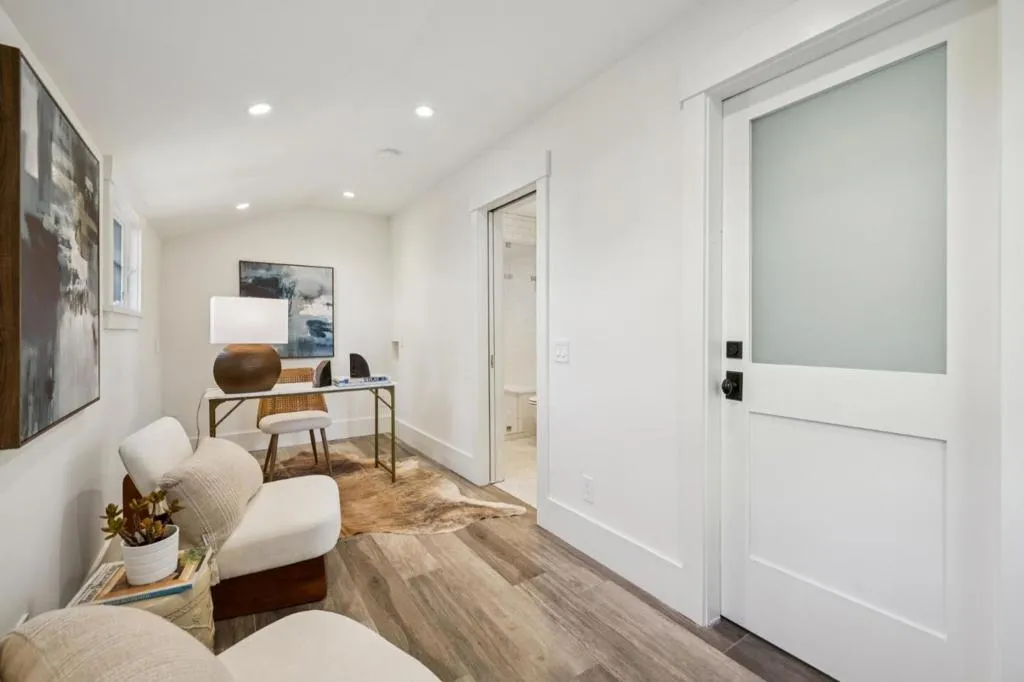 Tucked away on a quiet cul de sac in Menlo Park's Sharon Heights neighborhood, this renovated & turnkey residence offers a rare blend of privacy, style & exceptional indoor-outdoor living. Ideally located near Stanford, Sand Hill Rd & Hwy 280, the home provides convenient access to leading Silicon Valley tech campuses. The property showcases inviting curb appeal with manicured landscaping, fruit trees & turf lawn. The main residence offers 4 bedrooms & 2.5 baths. A separate bonus suite with full bath & private exterior entrance provides flexible use as an office, au pair or guest quarters. At the center of the home, a spacious kitchen-family great room with vaulted ceiling creates a warm & inviting gathering space. The chef's kitchen features stone counters, Carrara marble island, walk-in pantry & premium appliances including Wolf & Sub-Zero. The private bedroom wing includes a primary suite with double sink vanity & walk-in closet, plus three additional bedrooms served by a hall bath. The backyard is a standout, featuring Connecticut bluestone hardscape, covered loggia with heaters, outdoor kitchen with Lynx BBQ, fire pit, in-ground spa, turf lawn & putting green, all surrounded by mature hedging for privacy. Acclaimed Las Lomitas school district & near top private schools.
