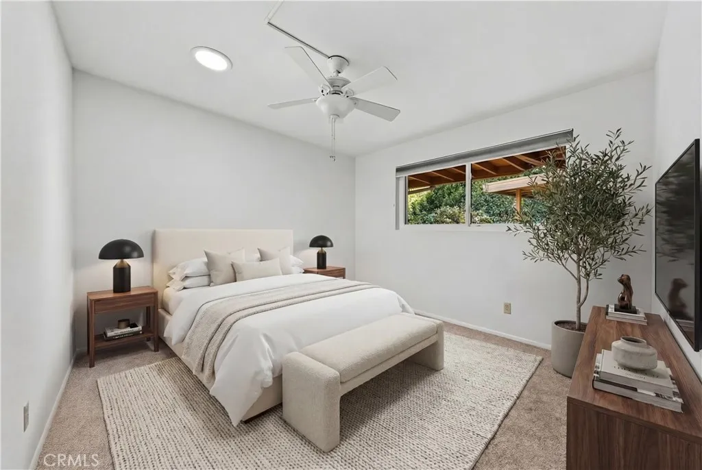 WELCOME HOME!! A unique opportunity awaits in a sought-after neighborhood! If you are seeking a single-story pool home in a peaceful location with ample outdoor space for play and gardening, this is it! Nestled on a popular Cul de sac in south Redlands, this property is brimming with possibilities. You’ll enjoy the privacy of being off the road with an enormous ¾ of an acre lot. The main house has a welcoming, mid-century vibe. Floor plan features a large living room with high ceilings and a wall of windows (newer dual paned windows throughout!). The primary suite is located on one side of the house and three guest rooms on the other. The kitchen and dining area will be the hub for your family gatherings. There is nice lawn space off the large patio. On the lower lot, you’ll find a sparkling pool suited to host the best pool parties ever! The mid-century modern pool house is the crown jewel of this cool property. It will surely be the backdrop to many relaxing summer afternoons. It has a large gathering/game area, and it is plumbed for kitchen space. It even has a bathroom with shower! A sport court area below provides the canvas for a game of hoops or volleyball. If Pickleball is your jam, you could create your own private court. There is untapped potential behind the pool house as well. This is a perfect place for your mini citrus and avocado grove, or maybe add an ADU and house your extended family or create rental income. When you visit this property take a moment, breathe in all the dreams and possibilities this home holds for you and yours.