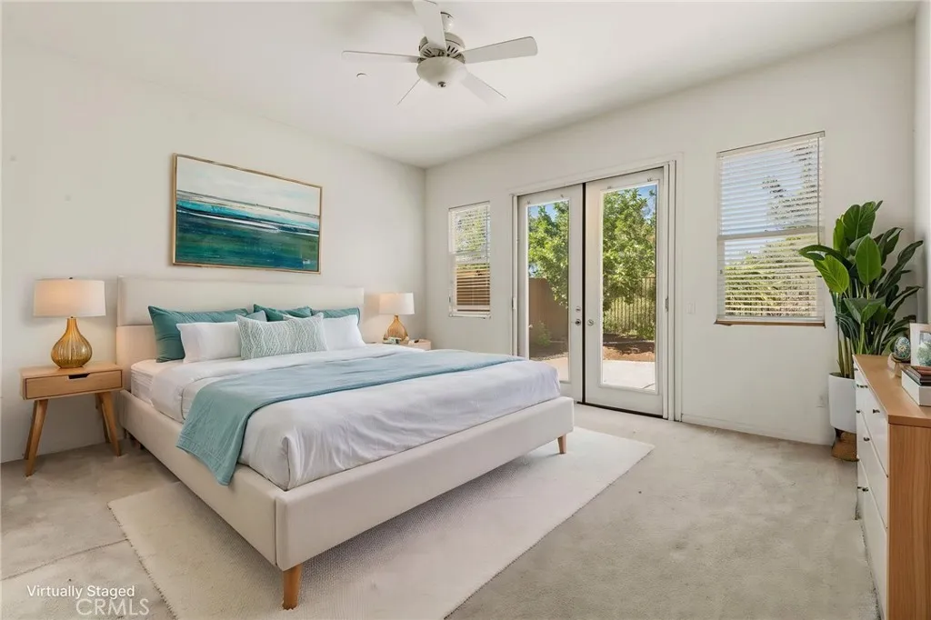Welcome to this gorgeous single-story home located on a desirable single-loaded street in the gated community of Peppertree Park, directly across from a lush grassy park. With beautifully landscaped front and backyards and a bright, open layout, this home offers both comfort and curb appeal. Inside, the light-filled interior features formal living and dining areas just off the entry, enhanced by elegant wood shutters on all front windows. The spacious open-concept kitchen and family room create the perfect gathering space. The kitchen is equipped with rich wood cabinetry, granite countertops, a tiled backsplash, double ovens, and a large center island with bar seating. The family room is warm and inviting with a cozy fireplace and direct access to the backyard patio. The primary suite is a peaceful retreat, complete with doors to the patio, a walk-in closet, and an en-suite bathroom featuring dual sinks, a soaking tub, and a separate shower. Go outside to enjoy the private backyard with a patio, mature apple and lemon trees, and tranquil greenery views—perfect for relaxing or entertaining. Additional highlights include a 3-car direct-access garage and a prime location within Peppertree Park, a gated community offering walking paths, parks, a basketball court, and picnic areas. This home combines style, space, and an exceptional setting in a highly sought-after neighborhood.