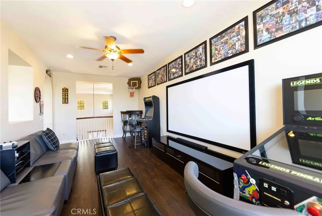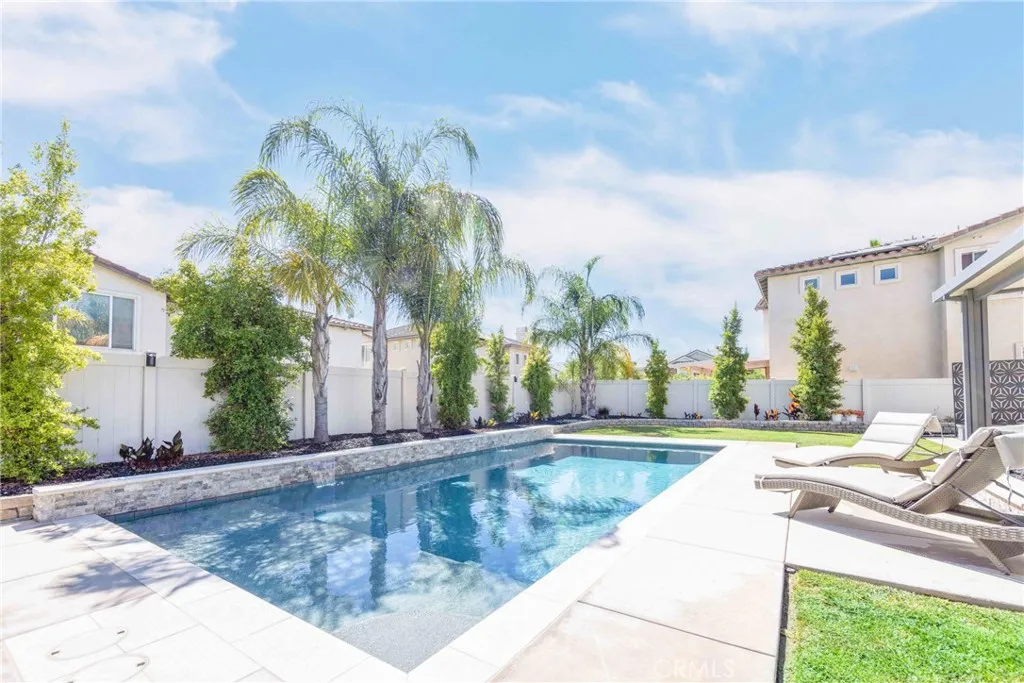 ***POOL HOME ALERT*** Welcome to this stunning residence nestled in Temecula's prestigious Wolf Creek community. This immaculate 4-bedroom, 3-bathroom home spans 2,851 sq ft and boasts a host of luxurious features perfect for the modern family. Upon entry, you'll be greeted by Pergo laminate flooring throughout the main floor and loft movie/game room, complemented by a living room stone tile fireplace that echoes the stylish stone and tile work of the backyard oasis. The gourmet kitchen showcases elegant granite counters and a convenient wine counter in the main living area, perfect for entertaining guests. Step outside to discover an oversized backyard retreat designed for relaxation and enjoyment. The centerpiece is a magnificent saltwater Pebbletech pool, complete with cascades and modern stone/tile work. Entertain effortlessly with a gas firepit and side stone/tile bench, all accented by a new Alumawood awning and pergola over the L bar. Mature palm trees and lush landscaping create a private paradise perfect for gatherings or serene relaxation. Additional highlights include a loft movie room, ideal for family movie nights, and a versatile fitness center within the tandem 3-car garage, featuring finished walls and an epoxy floor. Located on a quiet cul-de-sac, this home offers proximity to shopping, entertainment at Pechanga Casino, and easy access for commuters heading to San Diego. Zoned for the highly sought-after Great Oak High School, ranked 10/10 and recognized among the nation's top 100 high schools, this property combines luxury living with exceptional educational opportunities. Don't miss the chance to make this dream home yours. Schedule your private tour today!