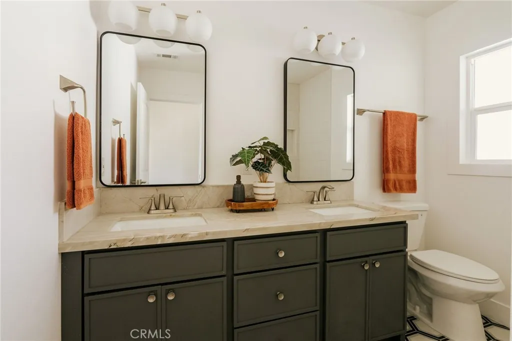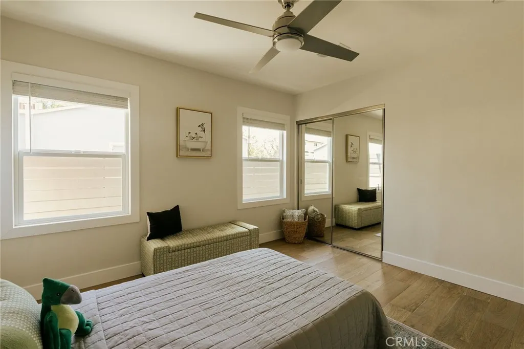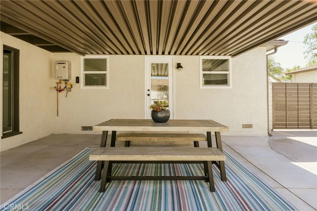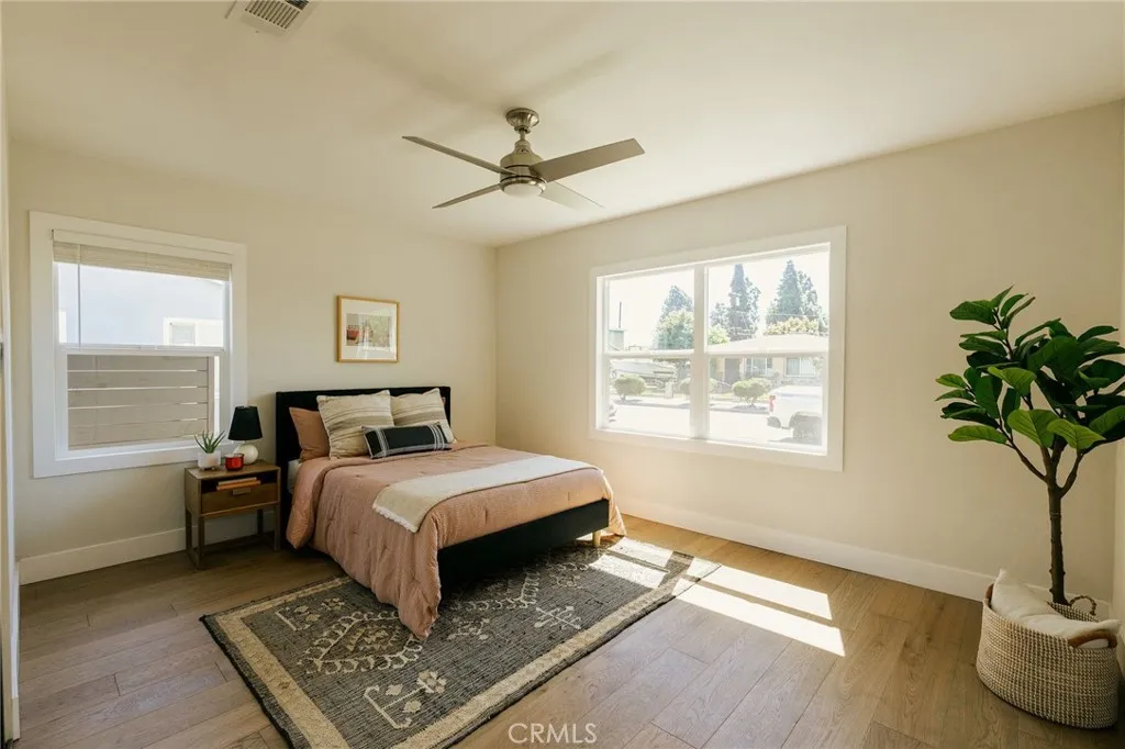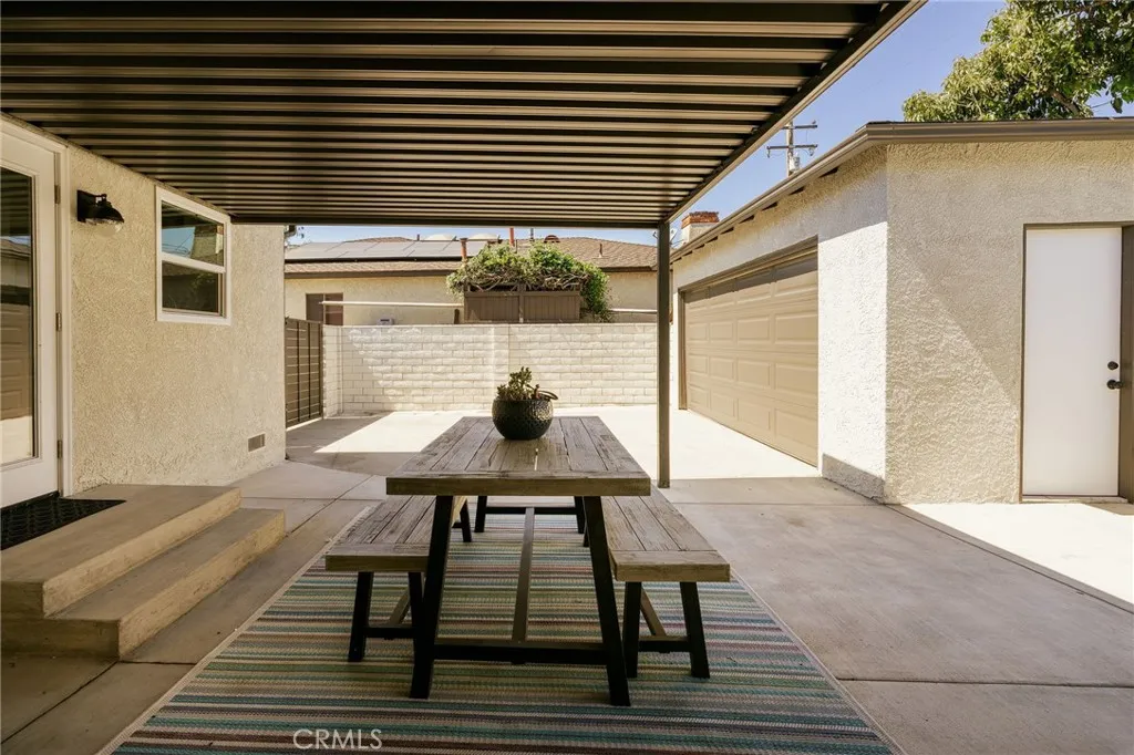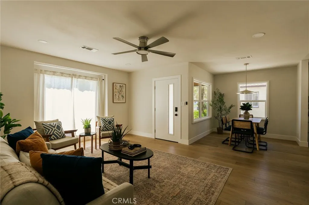 Welcome to this beautifully renovated 3 bedroom, 2-bathroom home located in desirable Long Beach neighborhood. Featuring a bright open floorplan, the front living area flows through to the dining area and kitchen. The kitchen has been updated with new cabinets, sleek quartz counter tops, tile backsplash, stylish fixtures, stainless-steel appliances and peninsula offering additional seating. The spacious primary bedroom has open beam ceilings, walk-in closet with custom built-ins, ensuite bathroom and access to outdoor covered patio. Both the primary and hall bathroom feature new double sink vanities, stylish new fixtures, and custom tile work. Other features include freshly painted interior and exterior, new luxury throughout the living area and bedrooms, new energy efficient vinyl windows, new doors, new roof, plumbing and light fixtures, new HVAC system, new garage door and motor. and tankless water heater. This home is great for fun and entertainment with a great outdoor space. The private enclosed backyard has a large, covered patio and a manicured yard. There is a two-car detached garage with additional off-street parking and gated driveway. Detached two car garage and spacious yard offers possible ADU potential. Buyer to verify all building codes and ADU guidelines with the city Tax rolls show different bedroom count.