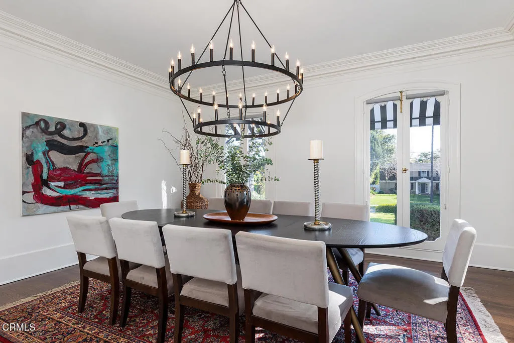 This 1921 Italian Renaissance Revival Villa epitomizes historic Altadena. Built by designer Pasquale de Rosa, friend of the legendary Zane Grey, this exquisite compound on over half an acre is a work of art. Sited to enjoy spectacular mountain views, the property includes a main residence, guest quarters, barn studio, and beautiful gardens. There is beauty to be found everywhere here, in the natural surroundings to the classical symmetry and curves. Featuring an H-shaped plan, the home's distinctive roofline is defined by its rounded gables, sculptural carved rafter tails, and starburst oculi at the east and west of the facade. Three french doors at the entry elevation boast views through the central living room, and open to a harmonious floor plan. Connecting public and private spaces, while enjoying access to patios and gardens to the north and south, the room is anchored by a decorative fireplace, rich carved mahogany woodwork, and original candelabra sconces. An elegant formal dining room features coved ceilings and french doors, flowing naturally into an updated eat-in kitchen, while a quiet sitting room with its own decorative fireplace enjoys views and direct outdoor access. Throughout the property, details are exquisite: custom plaster moulding, elaborate trim and baseboards, and carved wood frames on casement windows and doors speak to the vision and craft of the original builder. The main residence offers four bedrooms, including two generous primary bedrooms, one with a full ensuite bath, the other with french doors opening to the backyard gardens. The gardens are magical, with a grassy lawn framed by sculptural conifers, fruit trees, a cactus garden, roses, gardenias, and fragrant herbs, with the majestic San Gabriels in the background. A large filtered koi pond and a separate decorative pond peacefully ground the space. The separate back house with guest studio upstairs has handsome tongue and groove wood paneling, with a three-quarter bath, laundry and a garage with storage on the ground floor. Lastly, the onetime barn, now a studio, opens a world of possibilities as a home gym, gardener's studio, or future office. 1275 New York Drive is a once-in-a-lifetime opportunity to own a landmark property of genuine architectural significance in one of the Foothills' most cherished neighborhoods. Minutes from restaurants, coffee shops, retail and the cultural attractions of Altadena and downtown Pasadena, this transporting home is a gem.