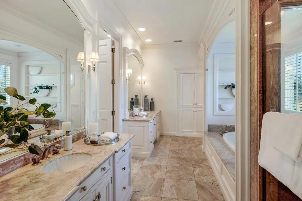This custom-built home in Sharon Heights, with the enduring craftsmanship of renowned builder Lencioni Construction, commands sweeping views of western hills & across a fairway of Sharon Heights Golf & Country Club. Approx. one-third-acre property combines privacy & scenery with beautifully designed grounds, with a large deck, synthetic lawn, & a newly plastered pool & spa. Elevated yard expands the outdoor space with built-in seating, vegetable garden, & expansive vistas. Interior features timeless architecture arranged across one spacious main level, with elevator access from a lower-level three-car garage. Detailed millwork, raised paneling, wainscoting, & custom cabinetry reflect enduring craftsmanship, complemented by a crisp neutral palette & newly refinished hardwood floors. Generously scaled living spaces include a view-framed living room, formal dining room with butlers pantry, kitchen & breakfast area that open to the family room, all oriented toward the western hills. Primary suite enjoys sweeping views & a marble bath with a jetted tub beneath a bay window. Second bedroom doubles as an office or library with built-in cabinetry & access to the rear grounds. Close to shops, restaurants, Sand Hill Road, Stanford University, Highway 280, & top-rated Las Lomitas schools.