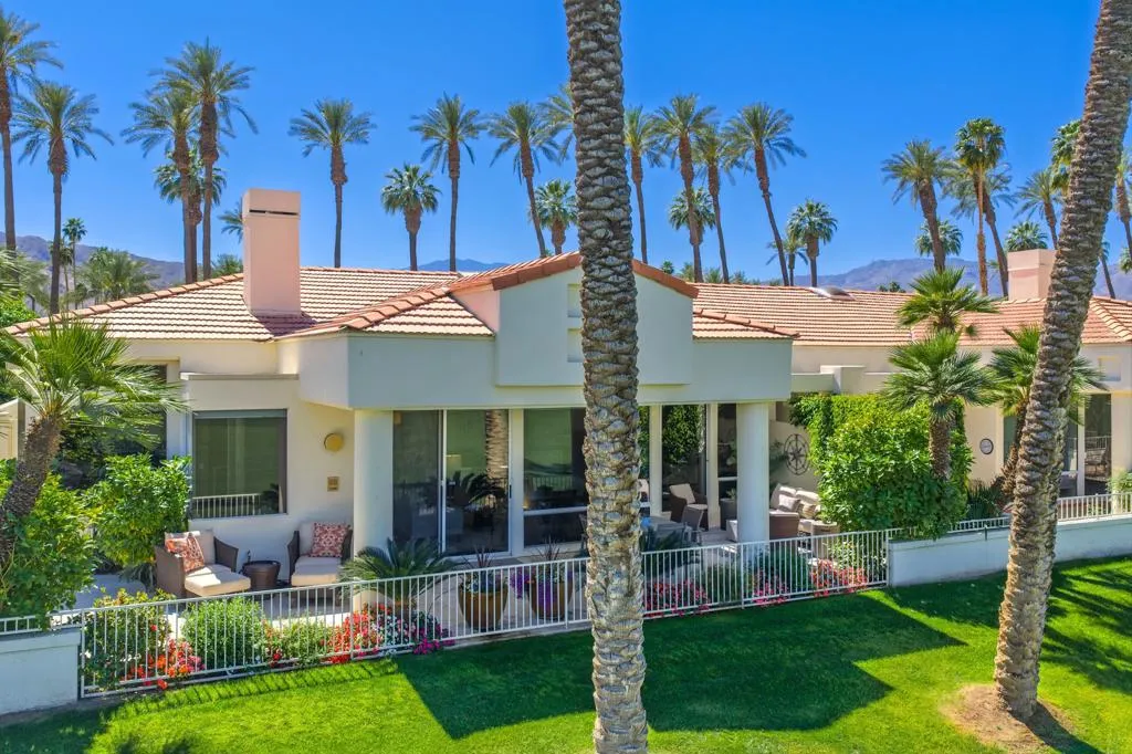UNBELIEVABLE...Steal this deal! Best Location in Indian Wells! Tastefully Updated & Furnished, Private Pool & Spa home, Guard Gated, Private Golf Club under 900K! Extensive upgrades include beautiful modern offset tile and wood floors, quartz countertops, stainless appliances, sleek double-sided fireplace clad in modern stone veneer, floating natural wood finish media cabinet, custom blinds & more! Great room open floor plan with the adjoining dining room offers ample light with high ceilings, well-placed skylights and expansive windows overlooking the golf course that give an airy indoor/outdoor feel, perfect for entertaining! The home features 3 bedrooms, 3 baths with one bedroom currently being used as a den. Enter the gated & tiled courtyard and you are greeted by sounds of waterfalls spilling into the architecturally designed private pool & spa with South facing mountain views. The Generous back patio is enclosed with a low fence & looks out on the 8th fairway with breathtaking North & West Mountain views. This premier Country Club features an 18-Hole Private Golf Course, newly rebuilt modern club house with indoor and outdoor bars, dining with disappearing walls of glass, A state of the art-5 star 8,000 sq ft Fitness & Wellness Center, Sports Court Pavilion with 11 new pickleball courts, 2 tennis courts, bocce ball courts, catch and release fishing, miniture golf course, water volleyballs and more! Something for the whole family. Largest womens club in the valley! Come visit and see why it's the talk of the town...the new it place to be!