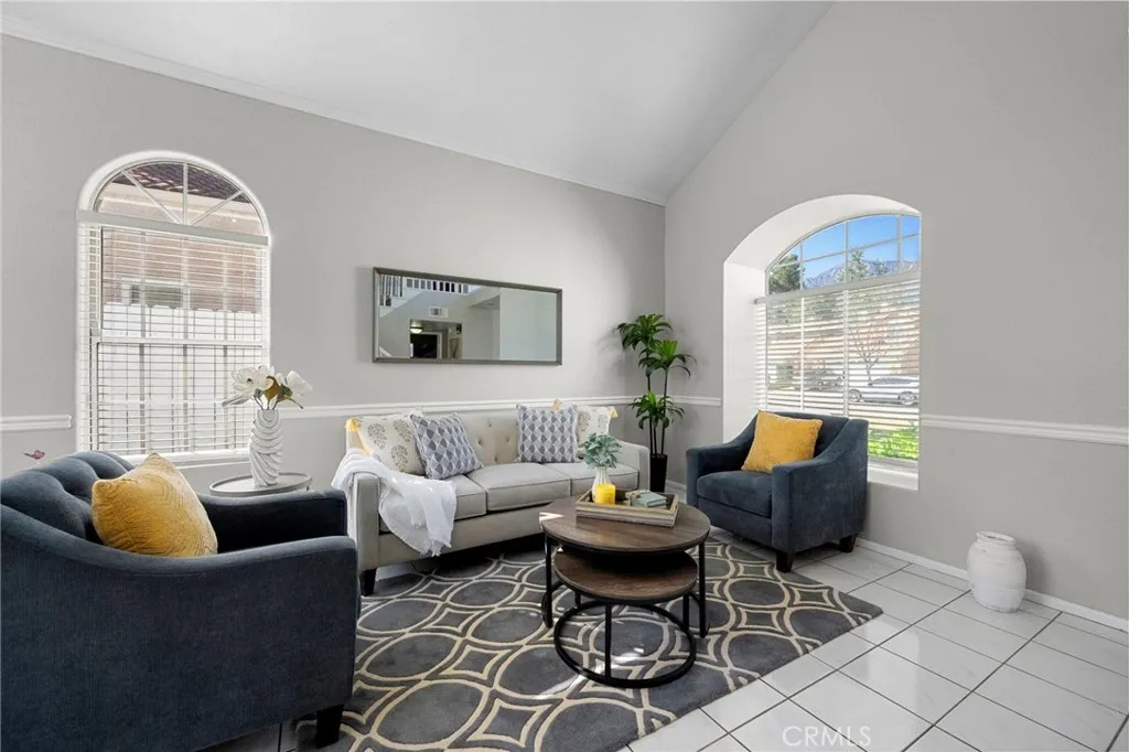 Welcome to 11825 Mount Royal Court in the highly desirable Vintage Highlands community in the heart of Rancho Cucmaonga. Located on a cul-de-sac in a quiet, well-established neighborhood, this gem offers 4-bedrooms, 2-3/4 bathrooms, and 1,896 sq ft of living space. One bedroom and a 3/4 bathroom with walk-in shower is downstairs, perfect for your parents, a teenager, or guests. Upon entry, you are greeted with a formal living room and dining room, and stunning cathedral ceilings, all recently painted with Sherwin Williams deco paint, in a fresh neutral color. The kitchen has granite countertops, stainless steel sink with newer chrome faucet, plenty of cabinet space, and a sunny breakfast nook with bay windows. The adjacent cozy family room has a fireplace with mantel, built-in selves, and a new sliding door leading to the rear patio. Upstairs, discover a functional space for a small desk or a comfy chair for reading and quiet time. There are two secondary bedrooms that share a full bathroom. The primary suite offers vaulted ceilings, mirrored wardrobe doors, new sliding doors leading to a newly built balcony where you can enjoy morning coffee or evening sunsets. Relax in your primary bathroom with luxurious Roman tub, separate shower, dual sinks, and a large dressing area. The 2-car garage has direct access to the home, and has a newer cooling/heating unit. The entire exterior of the home is newly painted!! Located within the award-winning Etiwanda School District: John L. Golden Elementary, Day Creek Intermediate, and Los Osos High School. Minutes from Victoria Gardens Mall, dining, shopping, entertainment, neighborhood parks, dog park, Etiwanda Hiking Trail, Top Golf, Ontario Mills, plus easy freeway access for commuters. Welcome home!