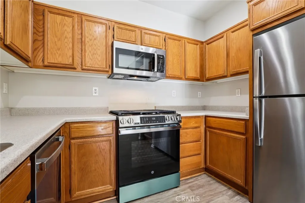 Welcome to this beautifully updated ground-floor, corner unit condo offering modern upgrades, a bright open layout, and low-maintenance living. Featuring brand new luxury vinyl plank flooring, fresh neutral paint, and all-new stainless steel appliances—including stove, dishwasher, microwave, and refrigerator—this home is truly move-in ready. A new stackable washer and dryer are also included, along with a brand new water heater for added peace of mind. The thoughtfully designed open floorplan maximizes space and natural light, creating a warm and inviting atmosphere. The living room features a cozy tile-framed fireplace and flows seamlessly into the kitchen, which offers wood cabinetry, stainless steel appliances, and ample storage. Down the hallway, you’ll find two spacious bedrooms and two bathrooms, including a primary suite with its own en-suite bathroom for added privacy and comfort. Go outside to your covered private patio—perfect for relaxing or enjoying outdoor dining. Located in the well-maintained Verona HOA community, residents enjoy access to a sparkling pool and spa, fitness center, and beautifully manicured grounds. This home combines style, comfort, and convenience in a desirable community setting.
