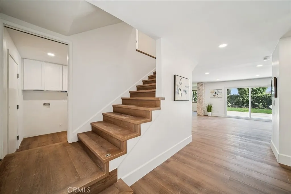 Absolutely stunning home in the prestigious neighborhood of El Dorado Park Estates in Long Beach, CA! This is a one-of-a-kind property, perfectly geographically positioned, right on the border of Orange County. This home must be experienced to be fully appreciated - every part of this home was renovated to absolute perfection! The curb appeal radiates the American Dream, with beautiful stackstone complimenting the exterior custom paint & trim creating instant joy upon arrival. Before stepping in through the custom White Oak front door, custom wood work and be seen encasing the double-pane vinyl windows throughout - creating the ideal setting for indoor/outdoor living in a wonderful and safe neighborhood to live and enjoy family. Once opening the front door, the height of the ceiling is immediately noticed as heightened to 8 feet, complete with interior walls fitted with 8-inch baseboards. The flooring is absolutely gorgeous and look flawless - brand new luxury vinyl tile installed throughout, both beautiful & practical for daily living in a beach city. The kitchen has been completely reimagined and opened up, with high-end custom white oak cabinets, new hardware, new lighting fixtures, custom accent lighting, Solitaj Q Quartz 2 1/4 inch bull-nose countertops, and complete with a custom built waterfall kitchen island with 55" x 101" dimensions. The kitchen provides a walk-in chef's pantry - a rare find for the area! The Living Room fireplace is fitted with beautiful Marvel Italian Tile, and the window interiors are fitted with custom oak casings. The full bath on the first level is remodeled to the highest standards - complete with a stunning urban slat wall. The two car garage enters into the separated laundry room - perfect for pragmatic use & the sound quality of the home. The stairway to the 2nd level has been rebuilt with custom materials & modern railing. The Primary Bedroom upstairs is an enlarged bedroom, complete with an ensuite Primary Bath - situated with the highest quality materials, a free-standing tub, double vanity, enormous walk in closet, and separate shower. The 5th Bedroom bonus room is as gorgeous as it is rare, designed with vaulted ceilings and beams. Other upgrades include: all new PEX Plumbing throughout, all new duct work installed, brand new HVAC system, new sewer line out to the street. This home will not last long!