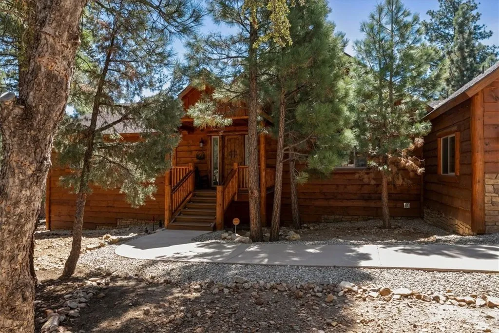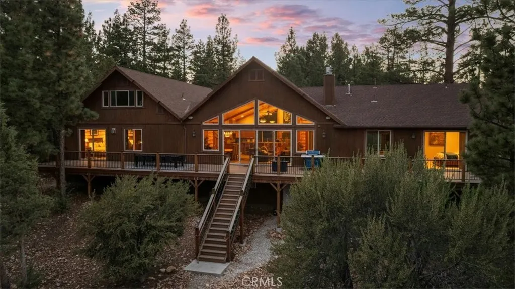 Stunning, custom, Luxury Lodge-style home on 1.27 private, forested acres, in sought-after Meadowbrook Estates. Built in 2015, this pristine 4,136 sq ft residence offers 4 to 5 bedrooms, 4.5 baths with an expansive deck and entertainment level featuring a game room, bar and 8 seat Theater room. Upon Entry, your eyes will gaze to vaulted wood-beamed ceilings, a wall of floor-to-ceiling windows capturing the peaceful forest views, and a massive rock wall fireplace, creating a grand Lodge style gathering space ideal for entertaining and relaxation. A gourmet chef’s kiss kitchen features Thermador appliances, natural-edge granite countertops, two dishwashers, double ovens, wine fridge, casual bar height seating, and a giant walk-in pantry. The open concept floorplan flows seamlessly to the outdoor Trex deck. Serene Forest views and the peaceful sounds of nature are the backdrop to this magnificent home. Retreat to two spacious primary suites adorning separate wings of the home—each with spa-inspired en suite baths and private deck access. After a day at the lake or on the slopes the soaking tubs with sky and tree top views offer the ideal escape. Upstairs a dedicated entertainment wing is the place for fun. Get a little competitive in the game room. Enjoy a cocktail and chat at the wet bar equipped with a wine fridge and dishwasher. Or... cozy up with snacks and a blanket in your 8-seat theater room with reclining chairs, projector, and sound system. The flex space of the entertainment wing with it’s full bath can double as additional guest quarters and the theater room can easily convert to a spacious 5th bedroom/bunkhouse if desired. Enjoy outdoor living on the expansive Trex deck with panoramic forest views—ideal for dining, relaxing, stargazing and roasting marsh mellows. Spot wildlife and soak in nature as you wander your acreage down to the seasonal stream. Additional features include: 3-car garage with EV charger, custom murals, and high ceilings, central A/C, Wi-Fi thermostats, surround sound, security system, extra large laundry/mudroom, and central vacuum. A long driveway is perfect for boats/toys or RV. Nearly all furnishings are included, making this masterpiece more than move-in ready. Ideal as a primary home, luxury vacation getaway, or income-producing rental/Air BNB. Currently licensed and with excellent management in place. This truly unique custom home has everything you've dreamed of. Create lasting memories in this magical mountain escape.
