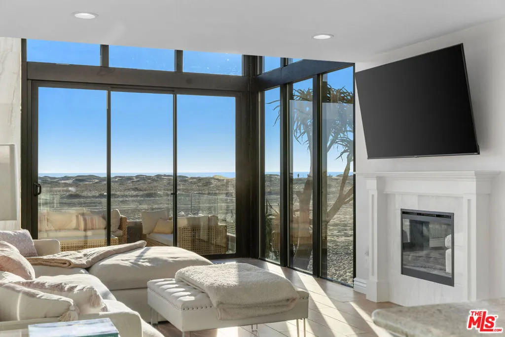 Marina del Rey 2 bed/2 bath condo is truly a beachfront showstopper. Framed by endless blue horizons and the ever-changing light of the Pacific, this exceptional corner residence captures the essence of coastal California living. Designed with a mid-century sensibility and a strong architectural point of view, the home offers a seamless connection between indoor comfort and the natural beauty just beyond its walls. Expansive floor-to-ceiling glass draws in sweeping ocean views from the distant outline of Catalina to the rugged stretch of Malibu while filling the space with soft, natural light throughout the day. The open living area is both inviting and refined, anchored by a fireplace and flowing effortlessly into a sleek, well-appointed kitchen, ideal for both relaxed mornings and evenings spent entertaining. The living room extends seamlessly through sliding doors to a glass-enclosed patio, creating the ultimate indoor-outdoor California lifestyle. The primary suite is a quiet retreat, where ocean views greet you each morning. Thoughtfully designed with custom storage and a spa-inspired bath, it offers both comfort and calm. A secondary bedroom and beautifully finished guest bath provide flexibility for visitors, a home office, or additional living space. Just beyond, a private outdoor area invites you to unwind, dine, or simply take in the coastal air. Perfectly positioned, the home offers immediate access to the beach, nearby dining, and the vibrant yet relaxed lifestyle that defines this coveted stretch of the Westside. Whether it's morning walks along the shoreline or evenings accompanied by the sound of the waves, life here unfolds at a different pace. This is a home that resonates on a deeper level where design, setting, and lifestyle come together in a way that feels both rare and enduring.