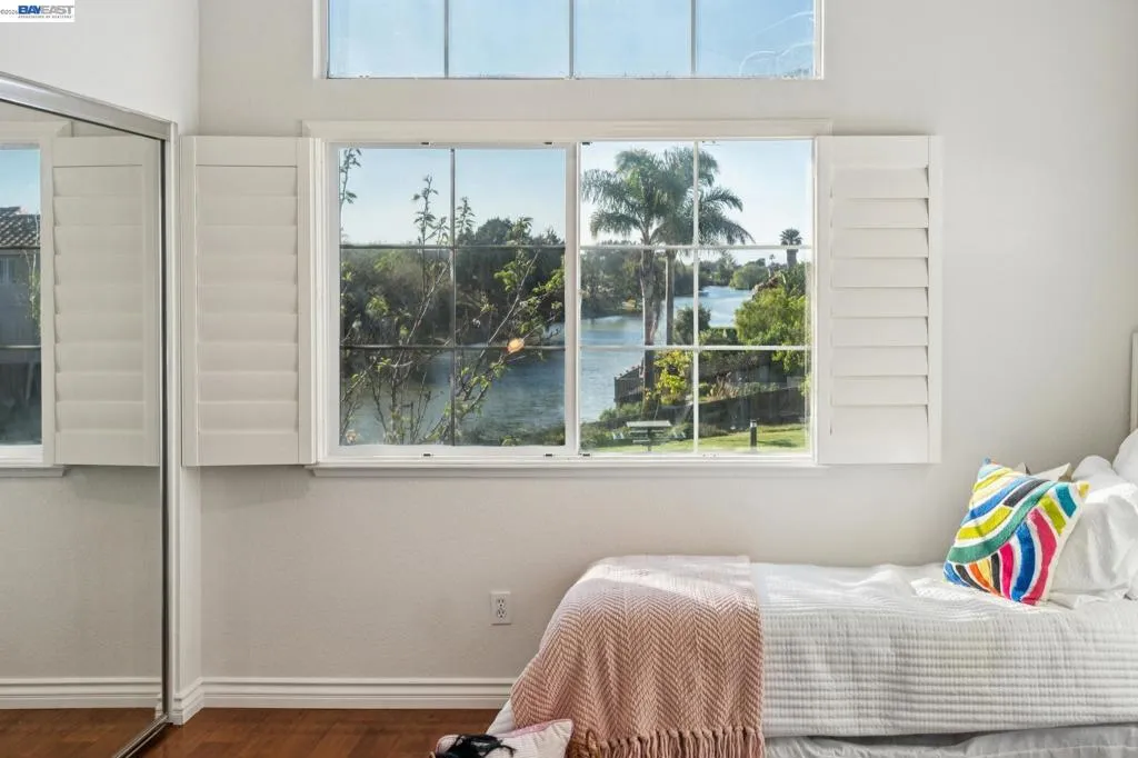 Stunning 4-bedroom Mediterranean home facing the lagoon trail on a cul-de-sac location. Upon entering through the impressive front door, you and your guests will be captivated by the soaring cathedral ceiling with center by a fireplace creating a relaxing atmosphere. The abundant windows allow natural light to flood the home. The main level features one bedroom and full bath. The open layout of the living and dining areas is ideal for family gatherings. The gourmet kitchen features ample cabinetry, stainless appliances, and a cozy breakfast nook that overlooks the backyard. The family room and kitchen are complemented by a generous 9-foot ceiling. The spacious family room with a two-way fireplace looks out to the backyard. You will appreciate the oversized primary bedroom with a walk-in closet and a spacious primary bath. Additionally, the 3-car garage includes area suitable for a workbench. Situated on a quiet cul-de-sac next to a community playground, top schools, close to Oakland Airport, ferry boat to San Francisco bay and lagoon trails.