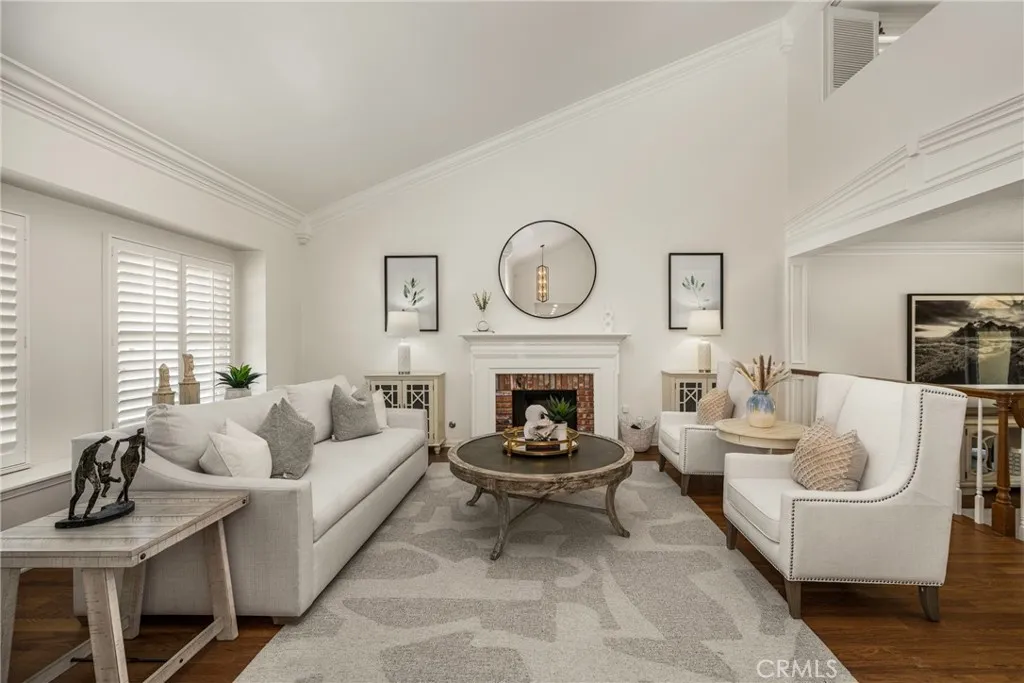 Welcome to this beautifully appointed 5 bed, 4 bath residence on a cul-de-sac, offering 4,216 sqft of thoughtfully designed space & resort-style living. Blending architectural charm & modern updates, the home’s exterior showcases Cape Cod & Colonial Revival influences highlighted by a welcoming covered front porch & circular driveway creating impressive curb appeal. Enter the grand two-story foyer with luxurious Carrera marble flooring & into an open & inviting floor plan, offering elegant formal living & dining rooms. The heart of the home is a French country-inspired kitchen, featuring warm, muted tones & classic elements that evoke timeless cottage charm, while providing an inviting space for family gatherings. Kitchen opens to casual dining area overlooking the pool & expansive family room, featuring custom wainscotting & a fireplace as the centerpiece of the room. Hardwood flooring throughout much of the first level adds a sense of continuity to the space. The downstairs includes a generously sized bedroom/office, remodeled bath & large laundry room with storage & direct outdoor access - perfect for pool days. The home has been extensively upgraded; beautifully remodeled baths displaying modern finishes & new carpet & paint, all adding warmth & style throughout. Upstairs, the primary suite serves as a private retreat, featuring a fireplace & offering a peaceful sanctuary at anytime. Elegantly remodeled primary bath features a luxurious soaking tub, quartz surfaces & gold finishes, creating a perfect place to relax & recharge. A separate walk-in shower with custom tile & toilet area offers additional privacy. The large bonus room, with soaring ceilings, is an addition & unique to this floor plan. With its own kitchen area/bar & remodeled bath, it provides exceptional flexibility as a media room, guest room, gym or playroom. Second level includes a stunning full bath shared with 3 large secondary bedrooms, separate from the primary suite for ultimate privacy. Designed for true SoCal living, step outside to an entertainer’s paradise featuring a sparkling pool & spa. A fully equipped outdoor entertainment area has a kitchen with a new grill, as well as green space for kids/pets. The private & expansive outdoor space complements the home’s impressive interior. Completing the home is a 3 car garage, ready with 220V for an EV. With timeless design, classic style, modern upgrades & resort-style amenities, this residence is the perfect place to call Home!