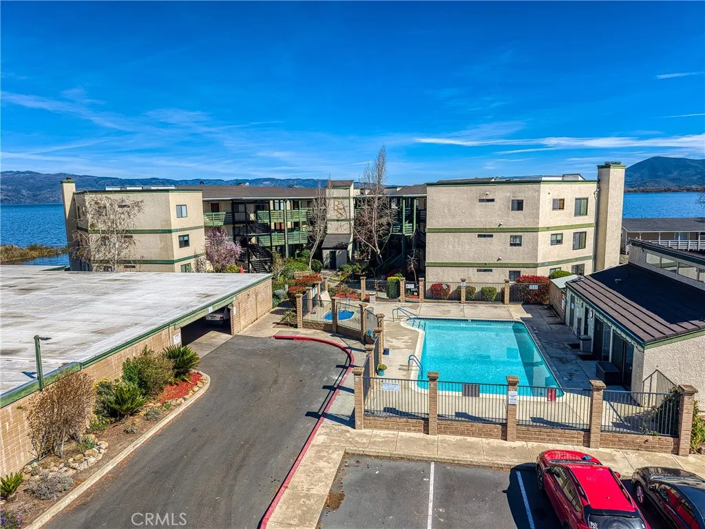Private Master suite looks over the stunning Lake and Mt Konocti. I believe fire insurance and roof care is all included in your fee. Wonderful swimming pool, hot tub, and lawn that you don't have to maintain! This Condo has 2 full bathrooms some modern upgrades, centrally located. Laundry inside, VAULTED CEILINGS, only the third story has real fireplaces and high ceilings. 1 covered parking space with storage and open guest parking. Stool on the dock with a cup of coffee.