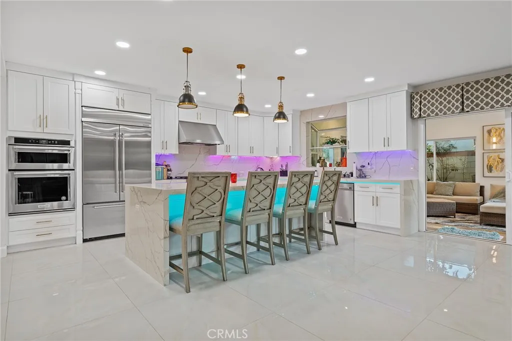 Welcome to this beautifully upgraded and move-in ready home offering a perfect blend of modern design, comfort, and functionality. Featuring an open-concept layout, this residence is filled with natural light and showcases high-end finishes throughout. The stunning chef’s kitchen serves as the heart of the home, complete with a large quartz waterfall island, custom cabinetry, stainless steel appliances, and designer lighting. The kitchen flows seamlessly into the expansive living and dining areas, creating an ideal space for both everyday living and entertaining. The spacious primary suite provides a private retreat, featuring a luxurious spa-inspired bathroom with a freestanding soaking tub, oversized walk-in shower with designer tile, dual vanities, and a generous custom walk-in closet. Additional bedrooms are well-sized and thoughtfully designed. Upgrades include recessed lighting, wide-plank flooring, modern fixtures, upgraded bathrooms, and stylish finishes throughout. A standout feature of the home is the permitted enclosed patio (approximately 1,000 sq ft), fully tiled and offering a versatile bonus space ideal for a second living area, entertainment room, gym, or home office. This permitted space is not included in the stated living square footage. Enjoy seamless indoor-outdoor living with access to a private backyard, perfect for relaxing or hosting gatherings. Conveniently located near shopping, dining, and major freeways, this home offers both comfort and accessibility. A rare opportunity to own a fully upgraded home with valuable additional permitted space.
