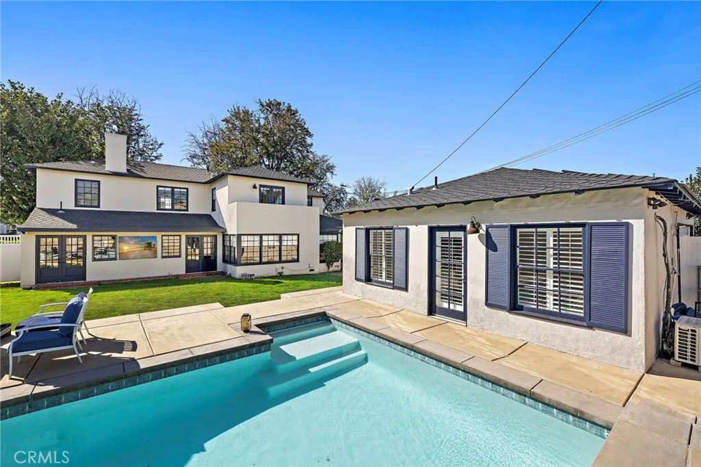 BIXBY KNOLLS | MAIN HOME + GUEST HOUSE Positioned mid-street along the famed and coveted tree-lined stretch of Myrtle Avenue, this residence presents a home of architectural warmth, thoughtful design, and timeless neighborhood charm. A formal entry welcomes you into a thoughtfully composed interior featuring a formal living room and formal dining room, each filled with natural light streaming through abundant windows. The main home offers 3 bedrooms and 3 bathrooms, with interiors that feel both refined and effortlessly livable. The open-concept kitchen flows seamlessly into the family room and is appointed with a center island and charming banquette seating, creating a natural gathering space. Just beyond, the sun room serves as an inviting flex space, complete with a beverage center and media area, ideal for both relaxing and working from home. A convenient downstairs powder room adds to the home’s functionality. The primary suite is a true retreat, featuring window seating and serene views overlooking both the front and back yards. The en-suite bathroom is thoughtfully designed with dual sinks, a soaking tub, and a steam shower, offering a spa-like experience at home. Complementing the main residence is a fully reimagined detached guest house, complete with its own A/C, Murphy bed, countertop with dishwasher, and an updated bathroom featuring a steam shower and is perfect for hosting guests, a private office, or multi-generational living. Set on a generous 9,471 square foot lot, among the larger parcels in the neighborhood, the outdoor experience is equally compelling. A newer pool and spa anchor the backyard, with the spa showcasing two elegant spillover features into the pool. A brick patio and expansive grassy area complete the setting, offering the RARE combination of the backyard that has it all. Solar panels add efficiency and added value. The two-car garage, paired with an additional parking pad, features a freshly poured concrete floor and new epoxy finish. Located in the heart of Bixby Knolls, this home offers a lifestyle that is both vibrant and community-oriented. Stroll to the nearby schools just moments away. Evenings can be spent at First Fridays as Atlantic Avenue comes alive with art and music, or enjoying nearby favorites like Nonna Mercato, Steelcraft, and Philz along with a curated mix of coffee shops and boutiques just moments away. This an exceptional home that balances design, function, and location beautifully.
