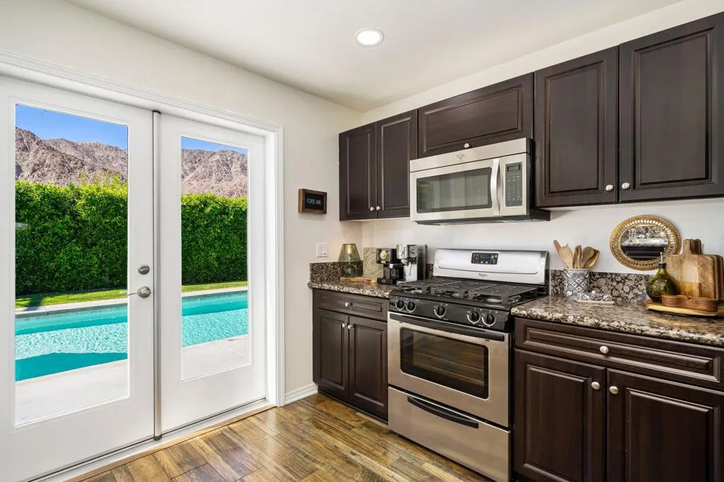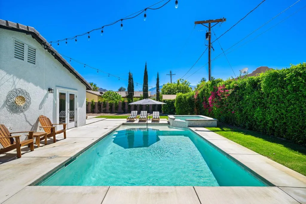 Discover your own private desert retreat in La Quinta Cove. This 3-bedroom, 2-bath home sits on an expansive lot and a half, surrounded by mature ficus hedging that creates a serene, resort-style compound. The backyard is a true showstopper, featuring a newly constructed pool and spa, fresh landscaping, and stunning mountain views that capture the essence of desert living. Just moments from Old Town La Quinta, you'll have easy access to charming shops, restaurants, and local events. Outdoor enthusiasts will love the direct proximity to Bear Creek Trail, leading to scenic hiking paths right from your doorstep. Thoughtful upgrades include a tankless water heater, soft water system, reverse osmosis filtration, and a fully upgraded garage with insulation, epoxy floors, and a mini-split AC. With no HOA and offered turnkey furnished, this home is ready for immediate enjoyment or investment potential.