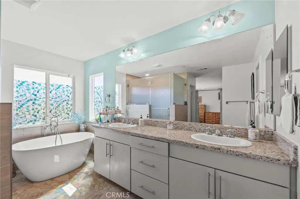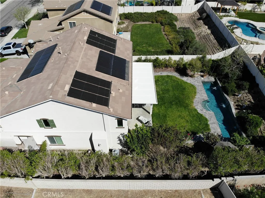 Spacious and highly upgraded home in Wildomar offering over 3,600 square feet of living space, a private apartment, and a backyard designed for Southern California living. Built in 2012, this property combines functionality, comfort, and versatility.The main home features 4 bedrooms, 3.5 bathrooms, and a large loft, along with abundant storage throughout. Exterior updates include fresh Behr paint. Custom wood shutters, and architectural details such as softened arches. The open-concept kitchen is designed for everyday living and entertaining, featuring a large center island, built-in refrigerator, stainless steel appliances, 5-burner Wolf range, walk-in pantry, and pull-out cabinetry.The primary suite includes a custom-designed bathroom with a spacious walk-in shower featuring sauna-inspired design elements and low-maintenance rain glass.An attached 1 bedroom, 1 bathroom private apartment provides flexible use options and includes its own private courtyard and stackable washer and dryer.Situated on a 9,148 square foot lot, the backyard includes a flagstone lap pool with fountains, oversized Alumawood patio cover, and a custom hardwood gazebo. Additional outdoor features include a private courtyard with Spanish pavers.Energy-efficient upgrades include solar (lease) for both the home and pool, along with a tankless water heater. Additional features include a tile roof, mountain views from the second floor, and a low HOA. Located near parks, shopping, dining, and convenient commuter access, this property offers a well-rounded combination of space, upgrades, and flexible living. 8 minutes to Starbucks, 3 minutes to Stater Bro's, 5 minutes to David A Brown middle school, 3 minutes to Donald Graham grade school, 3 minutes to a favorite Italian restaurant. And for the commuters, 4 minutes to the 15 freeway.
