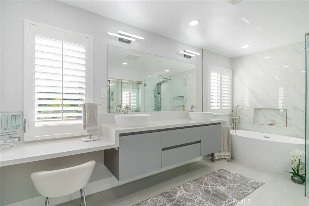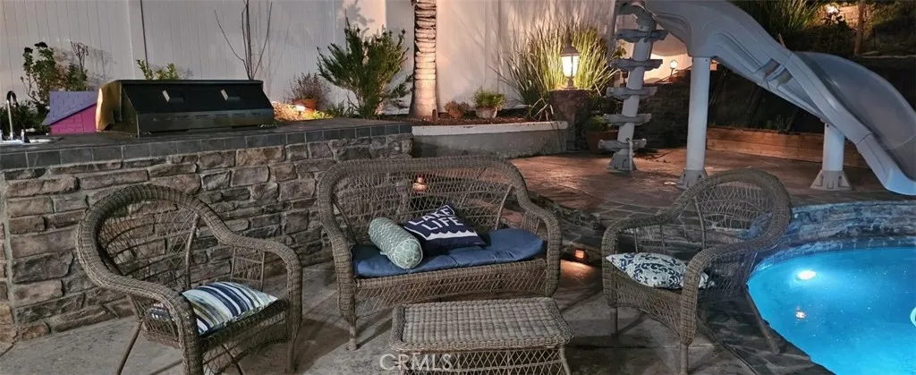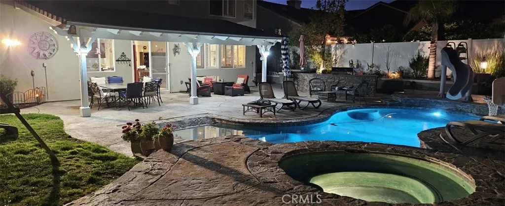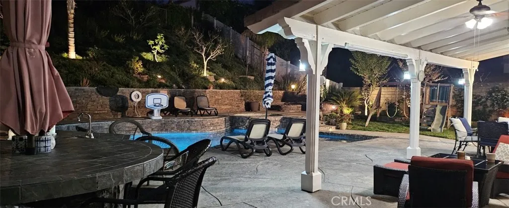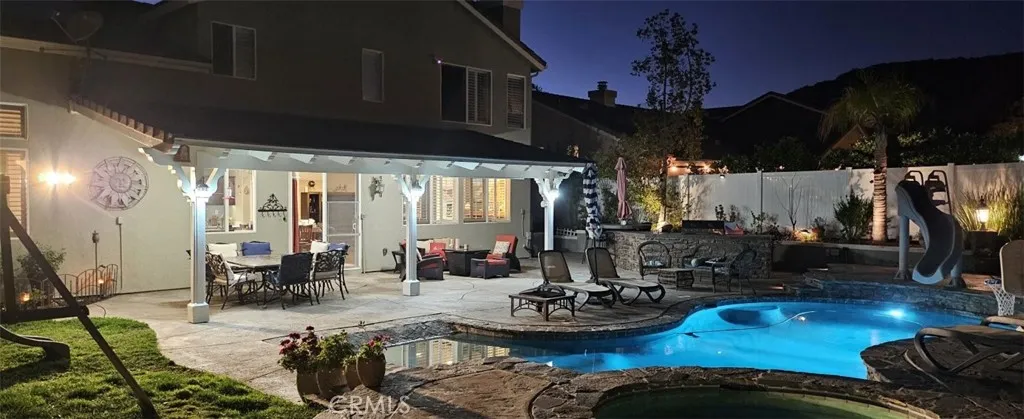 PERFECT HOME in beautiful Fair Oaks Ranch! Exceptional property, meticulously cared for, with extensive high-end upgrades throughout. Upgrades include plantation shutters, hardwood flooring & tile throughout. Crown molding, Corian kitchen countertops, stainless steel appliances, newer insulated garage doors, vinyl fence, newer HVAC and hot water heater. Custom built office downstairs with wall to ceiling cabinetry that can be converted to the fifth bedroom. Stunning Master bathroom featuring a freestanding soaking tub, frameless glass shower with built-in niches, dual vessel sinks, smart toilet and a sleek floating vanity. Designer marble-style tile and modern finishes create a bright and luxurious retreat . Beautifully remodeled guest bathroom showcasing a contemporary vanity with a quartz countertop, designer faucet, and modern cabinetry for added storage. The space is enhanced with elegant marble-style tile flooring and a newer toilet, offering a fresh, clean, and stylish feel. Solar with 2 Tesla batteries that will cover your entire home electricity. Incredible backyard!! Huge patio cover overlooking beautiful salt water pool/jacuzzi with waterslide. Enjoy outdoor living with a custom built-in BBQ island featuring a stainless-steel grill stone veneer finish, and bar-style seating-perfect for entertaining family and friends. The spacious patio area provides a comfortable space for outdoor dining and relaxing by the pool. Grass and gorgeous hardscape with many fruit trees (Almond, Apple, Apricot, Cherry, Fig, Grape, Jujube, Lemon, Loquat, Plum, Pluot, Pomegranate, Quince)! MUST see this house in person! Note: This is a 5 Bedroom which currently been used as office.