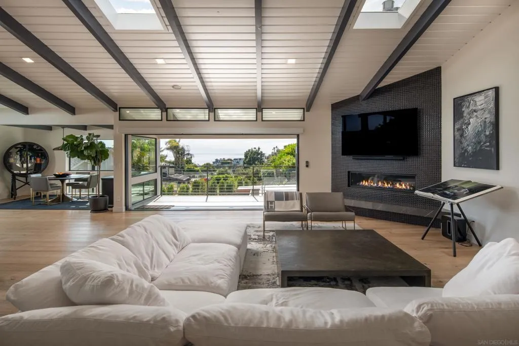 Welcome to Rutgers Road, a beautifully constructed ocean-view residence in La Jolla where no detail has been overlooked, with over $1.2M in professionally designed upgrades. Showcasing exceptional landscape architecture, the outdoor spaces feature an ocean-view pool and spa with a cascading waterfall, outdoor movie theatre, and multiple thoughtfully designed living areas and amenities. Perched in the iconic hills overlooking the Pacific, the home spans three levels yet lives primarily like a single story, with the main floor offering the kitchen, living room, view deck, primary suite, two additional bedrooms, office, laundry, pantry, garage access, and a private housekeeper’s room—an incredibly rare layout for a home of this scale. The primary suite is a true retreat, featuring a spa-inspired marble bathroom with heated floors and a spacious walk-in closet. Extensively upgraded throughout, the home blends refined interiors with resort-style outdoor living. The backyard has been transformed into a private oasis with a new pool and spa, elevated terrace with glass railings, Trex decking, outdoor kitchen and BBQ, fire pit, motorized pergola with heaters, infrared sauna, and cold plunge, all enhanced by professional landscaping, drainage, and lighting. The front yard offers striking curb appeal with curated landscaping, including King Palms, olive trees, and a statement fountain. Additional upgrades include exterior and structural improvements, custom railings, upgraded electrical and AV systems, solar, security, and custom window treatments. A true turnkey offering combining