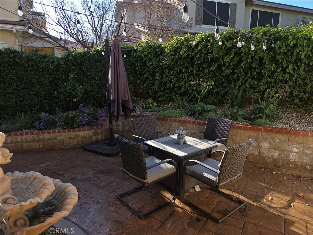 Welcome to this much sought after townhouse complex in Valencia. A lovely end unit 2 bedroom 2.5 bath in the desirable Montana community. This Wonderful floor plan has a light and bright living room with stone fireplace for cozy gatherings. The kitchen over looks the quartz breakfast bar for easy entertaining. Ample counter space and cabinets galore ! Newer dishwasher and farm sink for swift clean up !The downstairs living area has newer laminate floors for easy care and a half bath for guests. Upstairs you'll find The primary suite has plantations shutters, ceiling fan and appealing bath/dressing area. A walk in closet is an added bonus! The en suite second bedroom with full bathroom , ceiling fan and plenty of light. The backyard as Impressive space...lots of greenery and big patio area ~ side are for pets with well drain turf . 2 car attached direct access garage ~ NEW AC unit and garage door opener. Lower HOA dues, no mello roos and a fantastic community amenities including pool, spa, picnic area, tot lot and security patrol Conveniently located near top rated schools, parks and Bridgeport market place for shopping. Don't miss the fantastic opportunity to call Valencia Home !