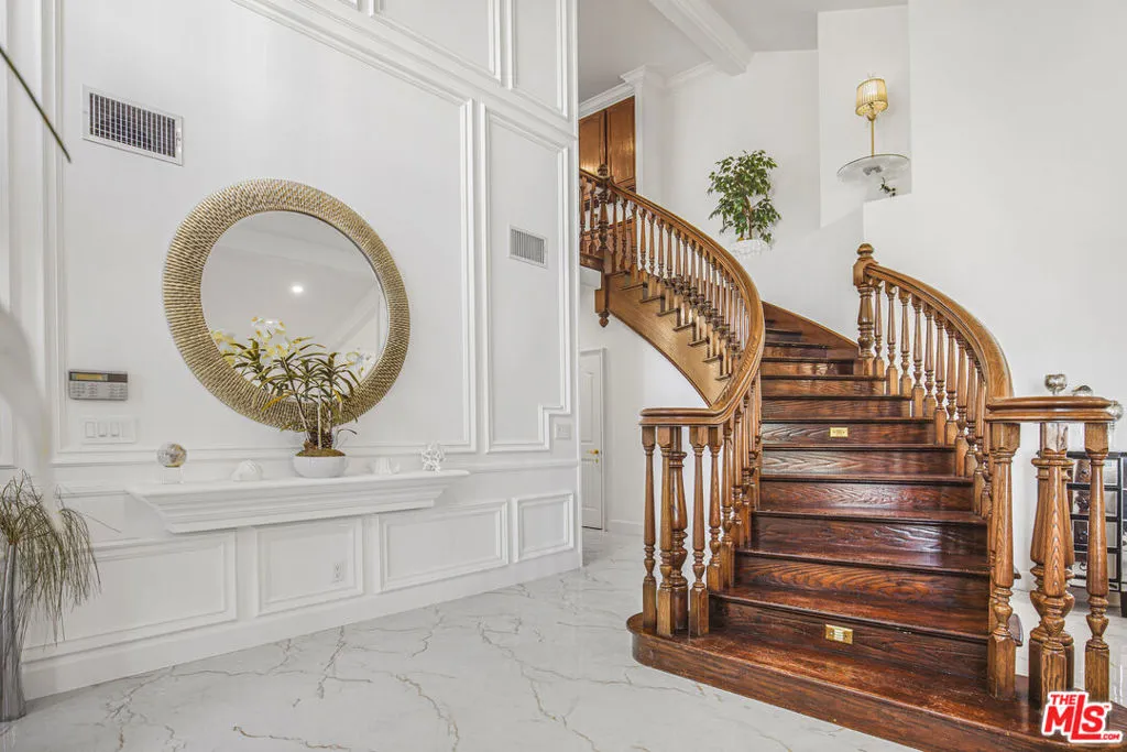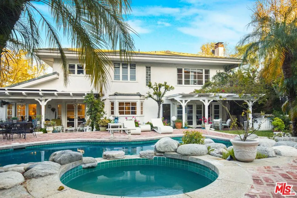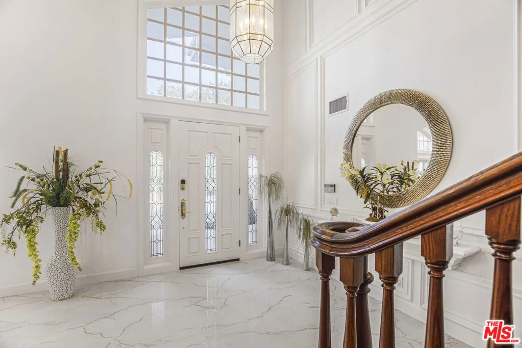 Sophisticated and beautifully remodeled, this Valley Circle Estates home blends timeless design with modern comfort, offering a seamless flow throughout. A grand entry with soaring ceilings and a sweeping staircase opens into expansive living spaces filled with natural light, oversized windows, and refined finishes. The main living room and separate family room, each anchored by a fireplace, create an effortless balance between formal elegance and relaxed everyday living, while the spacious dining area connects naturally to the heart of the home.The chef's kitchen is thoughtfully designed with sleek custom cabinetry, a generous center island, premium Thermador appliances, and a Samsung four-door refrigerator with integrated touchscreen, offering both style and functionality. An additional office provides flexibility and can easily be converted into a fifth bedroom if desired. The primary suite serves as a private retreat, complete with a spa-like bath and an oversized walk-in closet.Outdoors, the property offers a true entertainer's setting with a pool, spa, and multiple lounging areas, highlighted by an elevated gazebo deck that captures sweeping, unobstructed valley views. Ideally located just moments from Victory Trailhead for scenic hiking and within walking distance to a nearby park, this home delivers the best of indoor-outdoor California living.