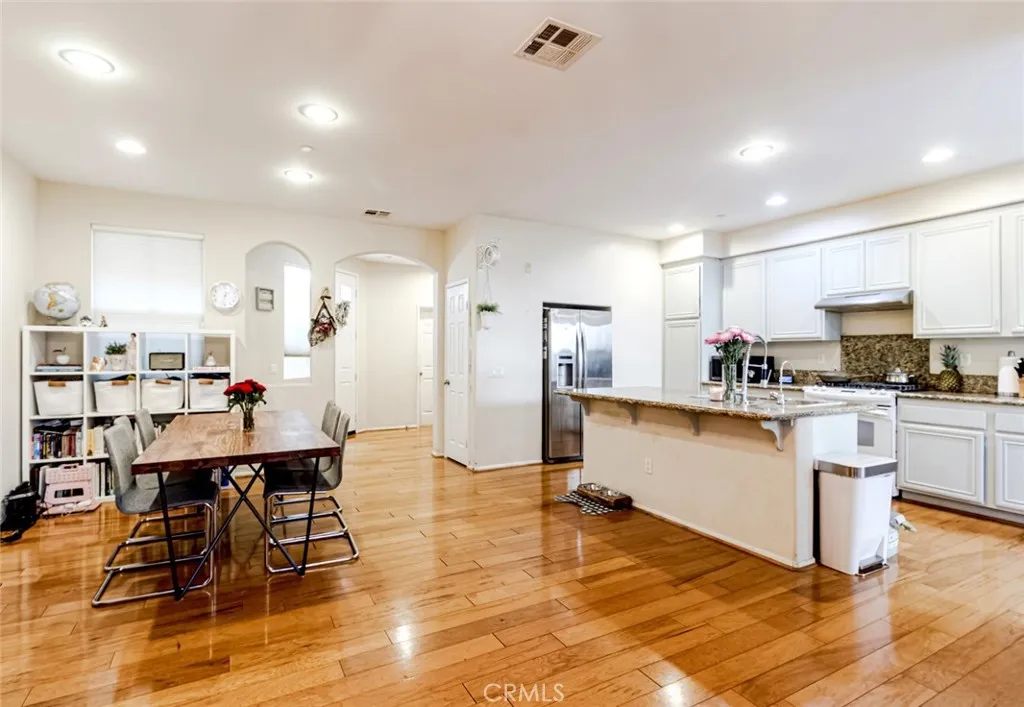 Pico Canyon Elementary School is conveniently located next to the community!!! Welcome to this beautifully maintained, sun-drenched two-story townhouse in the heart of Stevenson Ranch. Boasting 3 bedrooms and 2.5 bathrooms, this home perfectly blends modern elegance with everyday comfort. Located in the Blue-Ribbon, William S. Hart Union High School District, this home offers both comfort and convenience. Step onto gleaming hardwood floors and an open-concept layout, enhanced by LED recessed lighting. The gourmet kitchen features a granite island countertop, ample cabinetry, and seamless flow into the formal dining area and spacious living room, which opens to a private patio—perfect for a coffee and relaxation. The first floor also features a guest bathroom and a laundry room with direct access to the attached two-car garage. Upstairs, the expansive master suite includes a large walk-in closet, dual vanities, and a separate bathtub and shower. Two additional well-sized bedrooms complete the upper level. Nestled in a highly desirable neighborhoods in the Santa Clarita Valley, this home is just moments from shopping centers, parks, hiking trails, restaurants, and easy access to the I-5 freeway.