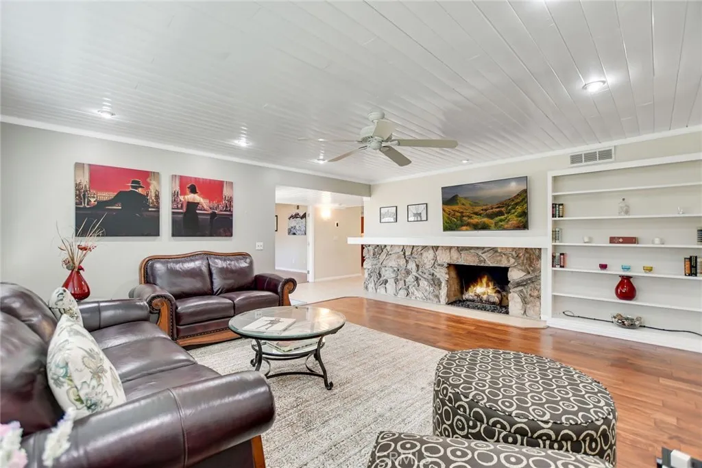 Welcome to this well maintained home nestled in the highly desirable Victoria Woods community. The main residence (2,576 sq ft) offers 3 bedrooms and 2 bathrooms with an open, versatile floor plan ideal for both family living and entertaining. Soaring vaulted wood-beamed ceilings and a two-way fireplace add warmth and character, while the gourmet kitchen flows seamlessly into the dining and family rooms. The family room opens to a stunning, park-like backyard — a true retreat. The spacious primary suite features a custom walk-in shower, soaking tub, and walk-in closet. A front-facing 2-car garage with workshop doubles as a 3-car tandem garage with 220 electrical. Brand new AC unit recently installed in the main home for year-round comfort. The detached guest house/ ADU (660 sq ft) is fully self-contained with 1 bedroom, 1 bathroom, a fully equipped kitchen, in-unit washer/dryer, and its own 2-car finished, insulated garage with 220 electrical. Recent upgrades include new flooring, fresh interior paint, and a newly installed ductless AC system. Whether for extended family, guests, or rental income, this ADU is a rare find. The entire exterior was freshly painted last year, and with numerous owner upgrades throughout, this property is truly move-in ready with gorgeous landscaping front to back. Bonus for eligible VA buyers: the existing VA loan is assumable at an incredible 2.426% interest rate — a significant advantage in today's market. Buyer must qualify with lender and cover any difference between loan balance and purchase price.