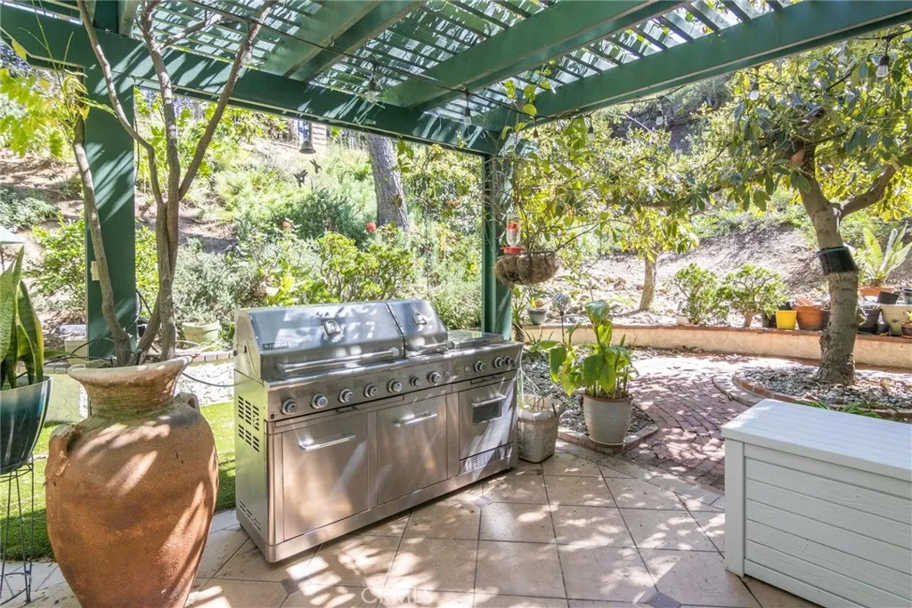 Private and exclusive at the end of a cul-de-sac, this home has a beautiful interior and a lush exterior. From the moment you enter this home, the cool, calm, relaxed environment surrounds you. From the beautiful parlor in the front of the house to the lush patio and pergola at the back there are numerous places to relax with friends and family. Enjoy the lush foliage, including mature producing avocado trees. Expanded and remodeled, this home includes a bespoke entertainers’s kitchen open to the dining area, the family room and leading out to the patio for larger gatherings, intimate get-togethers or family events. Must see to fully appreciate the number and scope of custom enhancements throughout this home. Extensive list is available for the asking.
