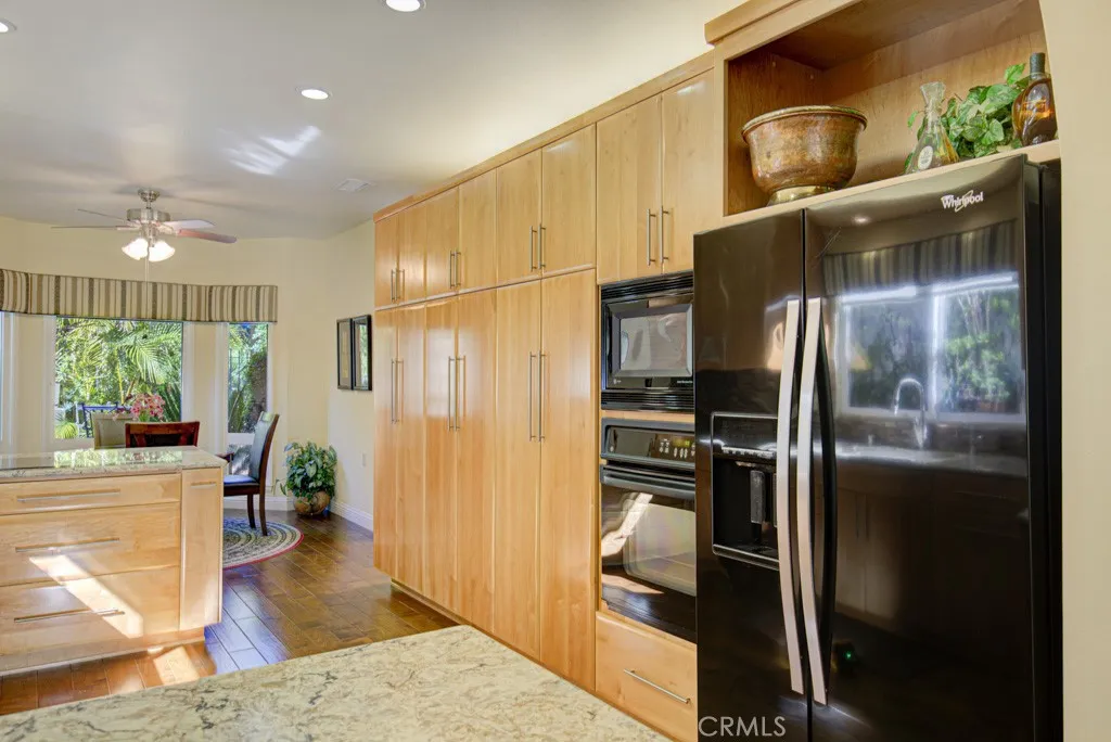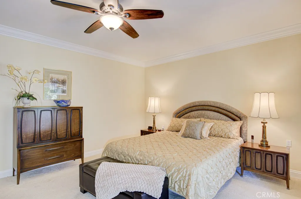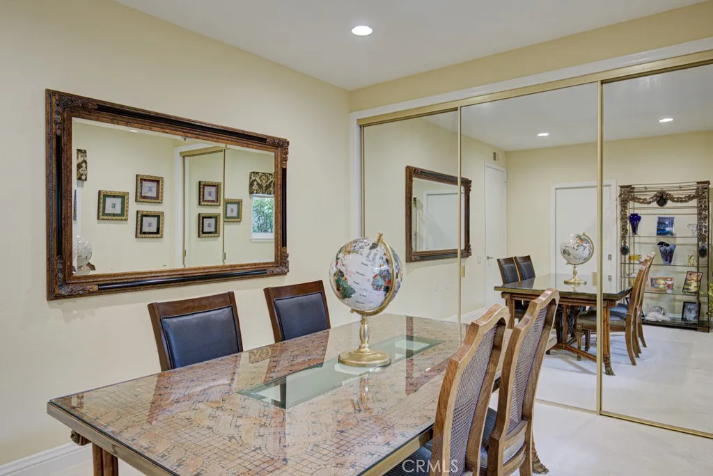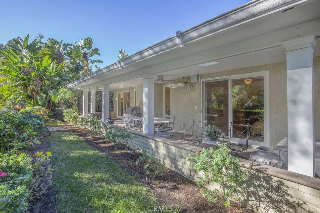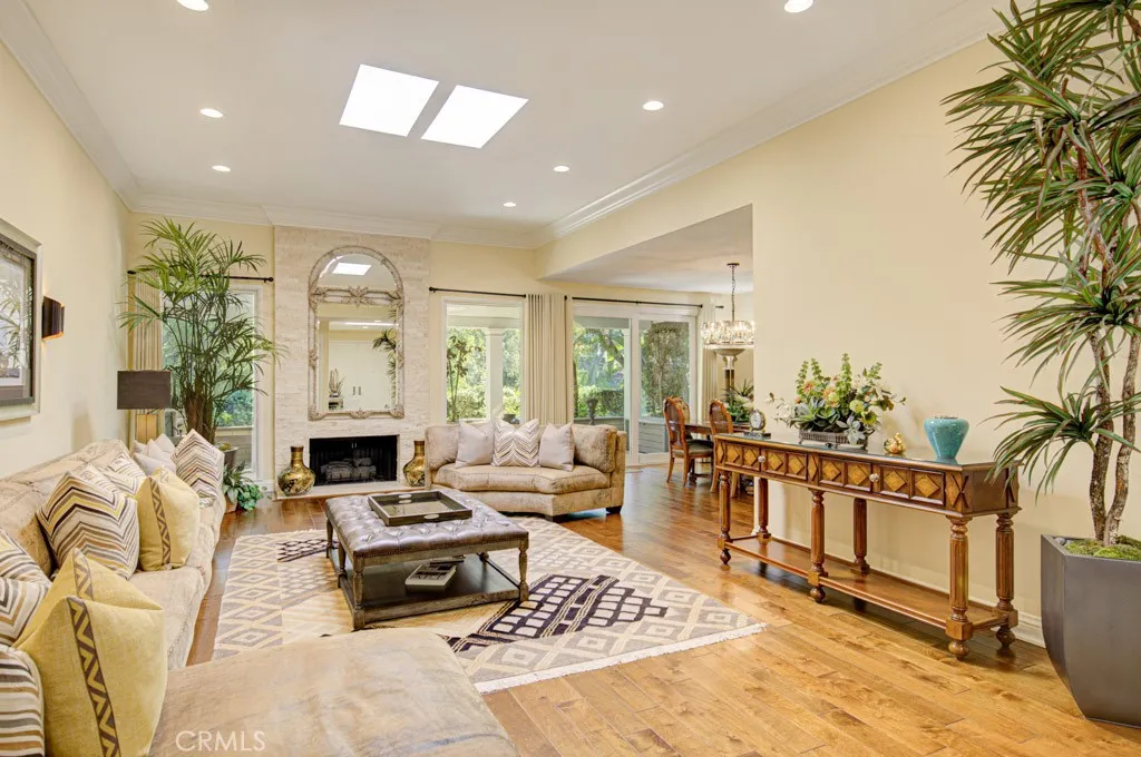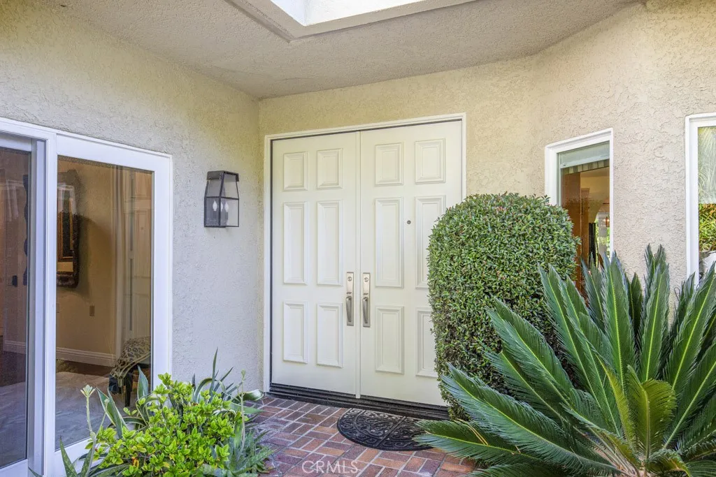 Welcome to 5544-B Rayo Del Sol – an elegant remodeled 3-bedroom, 2-bath single-level CASA LORENZO residence in the prestigious “110” neighborhood of the Laguna Woods senior community. One of the largest floorplans w/over 2200 sq ft of living space. Small private gated front courtyard - ideal for quiet relaxation or cozy social gatherings - welcomes visitors as they pass through the wrought iron entry gate. Double front door entry opens to a small foyer. Enormous living room space allows for multiple configurations of large furnishings & boasts dramatic 11’ ceiling & lovely wood-burning gas fireplace backed by an attractive floor-to-ceiling stacked stone wall. Adjacent dining room easily accommodates an oversized dining table. Bonus kitchen features incl: granite countertops, stylish wooden cabinets w/soft-close drawers, attractive tile backsplash, pots & pans drawers, spice drawer, multiple lazy susans, built-in trash/recycling drawer & a small breakfast bar area seating two. Ample storage capacity in multiple large kitchen cabinets w/convenient pull-out drawers. Comfortable breakfast nook overlooks the front courtyard. Expansive primary bedroom suite w/double door entry & walk-in closet. Primary bathroom w/dual sinks, granite countertops on beautiful wood cabinetry, toilet privacy door & shower w/convenient seat & grab bars. Two guest bedrooms: one currently serves as an executive office. It has direct access to the front courtyard, walk-in closet for storage & its own gas fireplace. Either guest bedroom could easily serve as an exercise area, sewing room or arts & crafts studio. Upgrades incl. smooth ceilings, recessed lighting, multiple skylights & solar tubes, ceiling fans, crown molding & baseboards, dual-pane windows & sliders, solid core doors, gorgeous hardwood flooring in all common areas & central HVAC. Separate laundry room w/full-size LG washer/dryer, utility sink & add’l storage. Huge covered rear patio (over 400 sq ft & accessible via glass sliders in the dining room & primary bedroom suite) extends the length of the residence & offers a delightful neighborhood view of mature trees. This patio has skylights, recessed lights, ceiling fan & heater. Flow between the indoor-outdoor common areas is ideally suited for large-scale social gatherings. Massive garage has storage closets & accommodates two vehicles plus golf cart. Driveway holds two add’l vehicles plus ample street parking for guests. Do not miss this impressive showcase home!