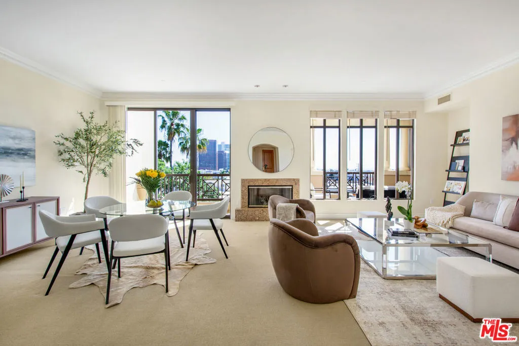 Experience the pinnacle of Brentwood sophistication. Perched atop the prestigious Westgate Condominiums, this breathtaking 2-Bedroom, 2.5-Bathroom Penthouse plus spacious Den is a masterclass in coastal-urban luxury and an entertainer's delight. Originally hand-selected by the developer, this residence boasts soaring 10-foot ceilings and an expansive, sun-drenched floor plan anchored by a stately gas fireplace. Designed to inspire, every corner of the home captures a symphony of vistas, from the rugged beauty of the Santa Monica Mountains and the Getty Center to enchanting peek-a-boo ocean views shimmering in the distance. The gourmet kitchen features an eat-in layout with mountain views and sliding-door access to a terrace, perfect for morning coffee or outdoor dining. Spanning four magnificent terraces totaling approximately 500 sq. ft. the indoor-outdoor flow is simply unparalleled. The palatial primary suite is a true sanctuary, bright and inviting with a fireplace, private sitting area, walk-in closet, and a spacious spa-inspired marble bath featuring dual sinks, a soaking tub, and separate shower. For the discerning collector, the property includes a staggering, oversized private garage, a rare find with room for a third vehicle and secured storage. Hosting is effortless with 30+ dedicated guest parking spaces and a high-tech haven equipped with gigabit fiber and a bespoke 24/7 security system. Complemented by white-glove 24-hour concierge service, a fitness center, and a lush spa, this residence is situated moments from San Vicente's world-class dining, boutiques, coffee houses and markets. Unrivaled exclusivity and modern elegance await.
