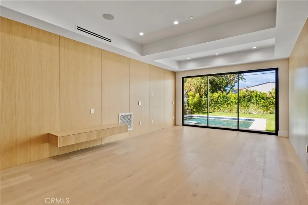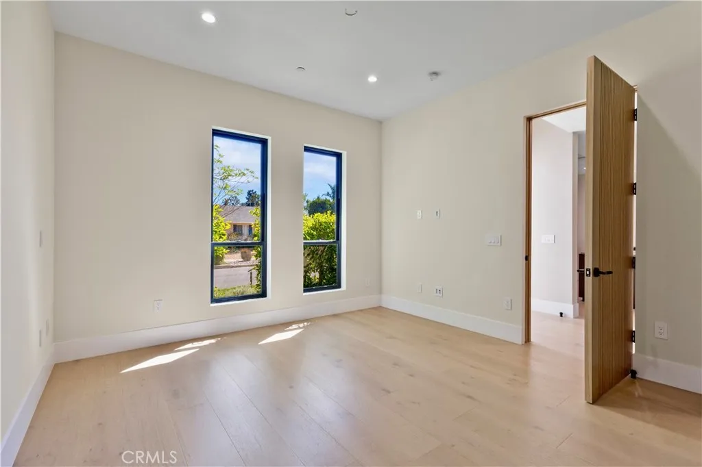Newly rebuilt contemporary home offering modern design, comfort, and privacy in one of Encino’s most desirable neighborhoods. Reconstructed nearly from the ground up, the residence features 4 en suite bedrooms and 4.5 baths across approximately 2,000 square feet of bright, open living space. High ceilings, expansive windows, and wide plank flooring create a light-filled interior with clean architectural lines and refined finishes throughout. The main living area is highlighted by a striking wood-paneled feature wall and recessed ceiling detail, while large sliding glass doors open to the backyard and pool, creating seamless indoor-outdoor flow. The kitchen is designed with custom cabinetry, sleek modern finishes, and an oversized island with seating, opening to the living and dining areas for effortless everyday living and entertaining. All four bedrooms include en suite baths, offering privacy and comfort. The primary suite features a spa-inspired bath and a spacious walk-in closet with custom built-ins. Two additional upstairs bedrooms also include generous walk-in closets, while a main-level bedroom is ideal for guests, a home office, or flexible living. The private backyard is complete with a pool, spa, and lush landscaping. Solar panels add energy efficiency. Ideally located near Ventura Boulevard’s dining, shopping, and neighborhood amenities.